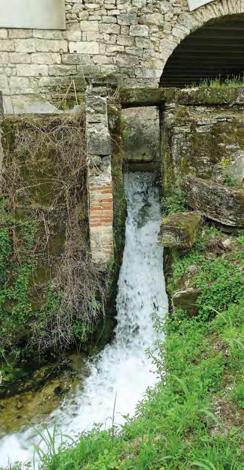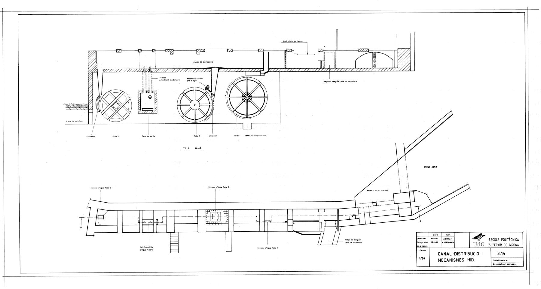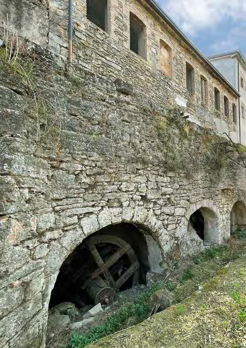 Façana nord on podem veure el pas de l’aigua i les diferents rodes hidràuliques.