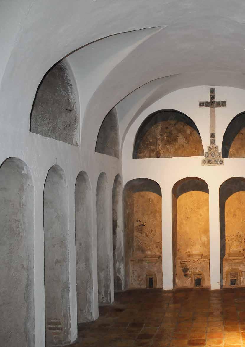 A través del singular cementiri, que aleshores se situava en el soterrani, sota mateix de l’altar major de l’església —que era l’actual àmbit de la gran sala d’exposicions temporals i la biblioteca superior— i ara resta a nivell de l’entrada al museu des de la Força, ens ha arribat el macabre ritual dels caputxins amb els seus morts.