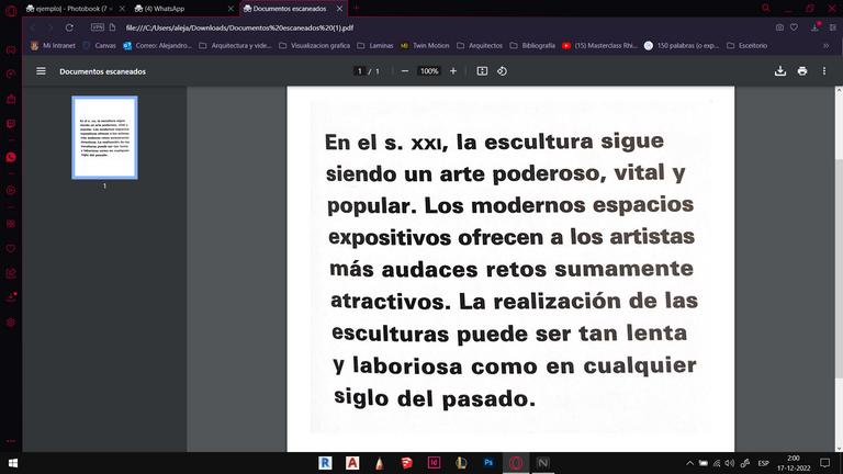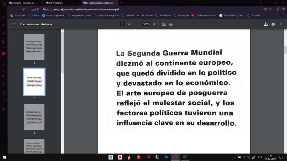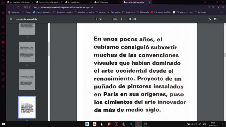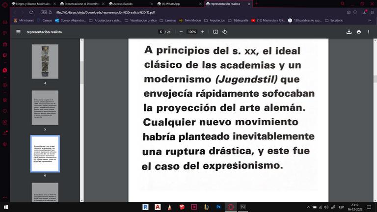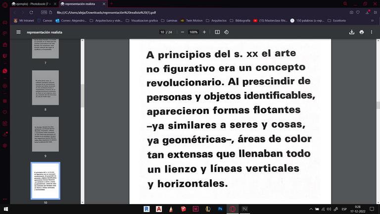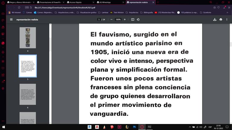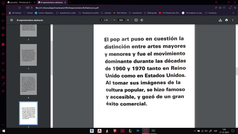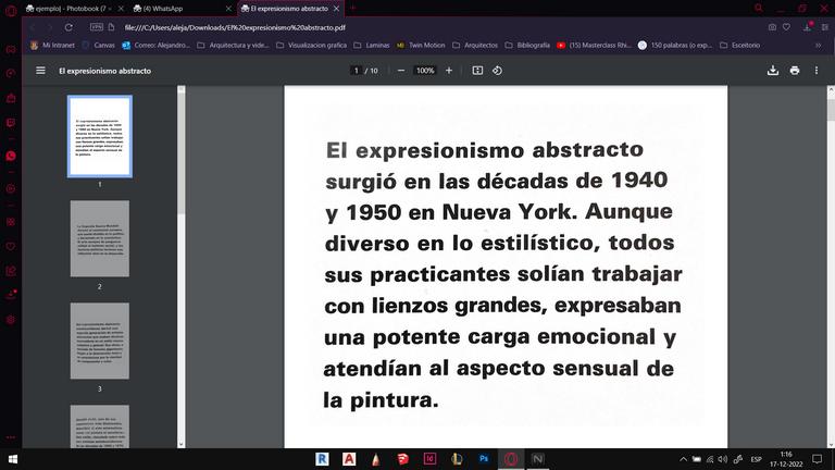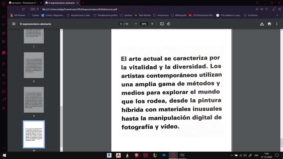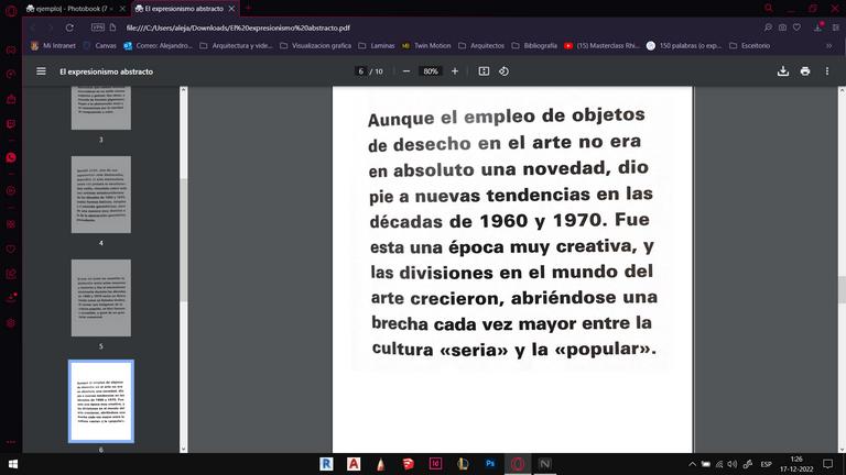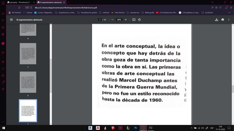"El arte moderno y contemporáneo se ha vuelto más abstracto y conceptual, alejándose de la representación de la realidad y enfocándose más en la exploración de las posibilidades formales y conceptuales del arte." (página 74)