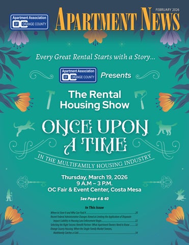 Apartment News is the publication of the Apartment Association of Orange County - a trade association focused on the needs of the multifamily housing industry - and the businesses that service the multifamily housing providers in Orange and Riverside Counties. For more information, please visit our website - http://www.aaoc.com For information on advertising, please contact our Advertising & Media Sales Director, Debbie DiBernardo, at (714) 245-9500 or debbied@aaoc.com