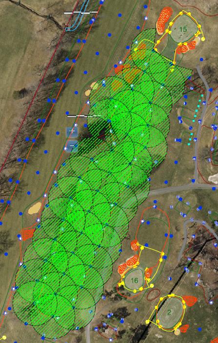 Our existing two-row irrigation system was installed in 1994 and is comprised of PVC mainline and lateral piping. The two-row aspect of this system means that we have two rows of irrigation sprinklers spaced in a 90-foot grid running vertically down each fairway. There is typically one sprinkler on the right perimeter of the fairway and one on the left as a golfer plays the hole. This spacing was typical for irrigation system installations at this time as the desire for lush green playing surfaces outweighed the desire for firm and fast playing conditions.