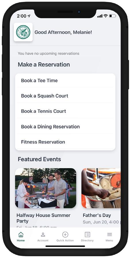 BY SHAWN ROWLEY, DIRECTOR OF COMMUNICATIONS AND MARKETINGWe are pleased to announce that on June 10, 2021, the Club launched its first app! This comes after a March 2021 update to the website, where all webpages and reservation systems were made with responsive design programming—meaning pages naturally scale to the viewing device's screen size. Prior to this, the Club's website, circa 2014-2020, had only a limited number of web pages and reservation systems designed to be mobile-friendly. I hope that our new app saves you time and makes it easier to access the information about the Club's daily activities and procedures on the go.
