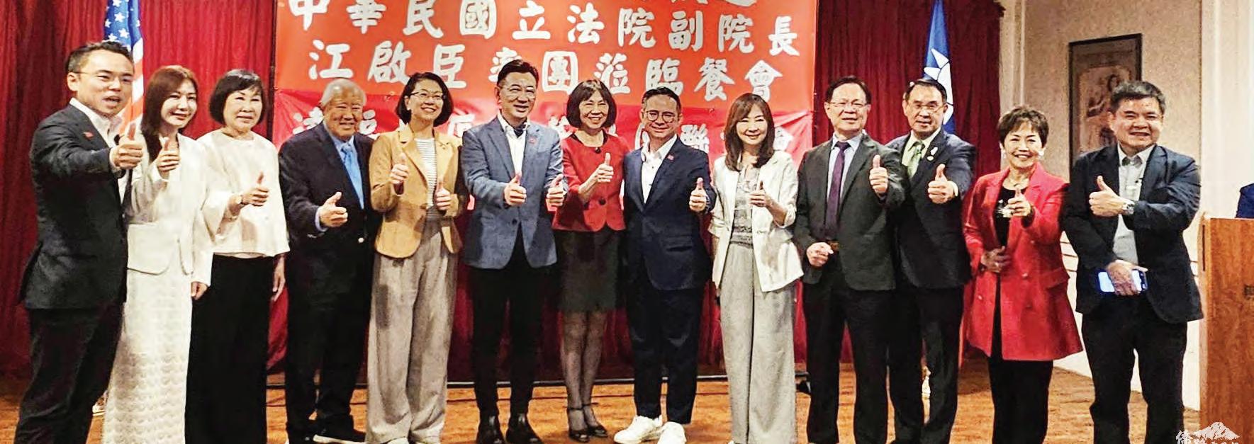 請鄉親回臺走走,回立法院坐坐, 讓國會聽見海外臺灣人的聲音。 晚宴由中華社團聯誼會主辦,會 長方芸芸在短短兩週內成功召集近