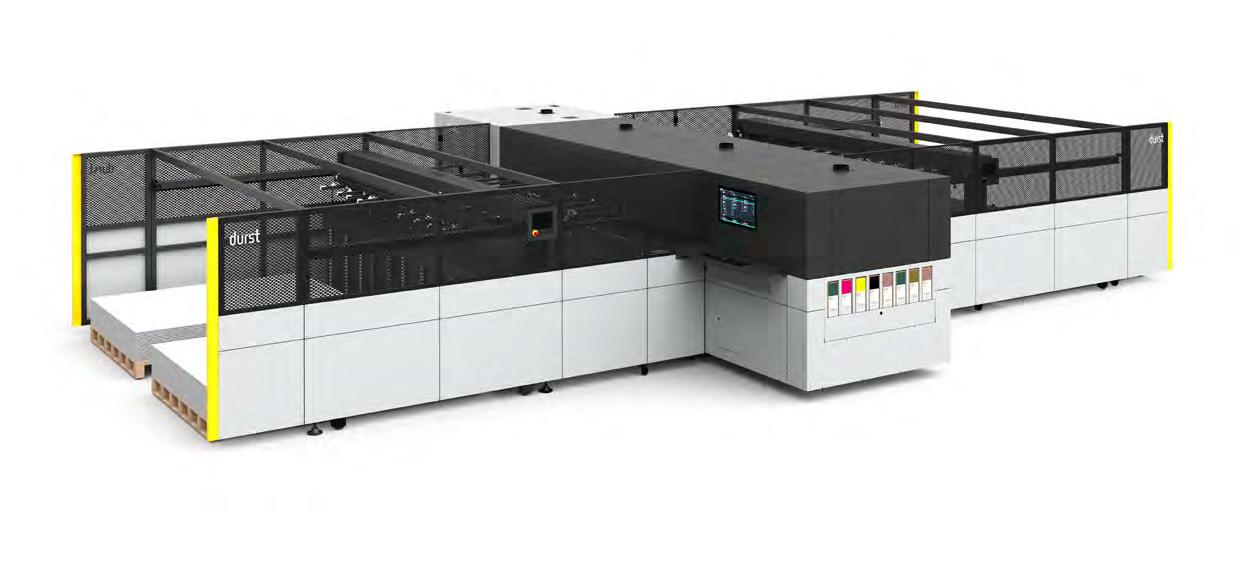 la calidad, así como el nuevo Durst MEP (Material Edge Protection), que protege los cabezales de impresión con sensores ópticos de bordes y placas protectoras. Además, se puede incluir Durst HAWK AI, el sistema inteligente de supervisión y asistencia de Durst, para automatizar el registro de color a color y proporcionar una corrección de boquillas de bucle cerrado durante la impresión.