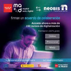 La Asociación Empresarial de la Comunicación Gráfica, neobis, ha firmado un nuevo acuerdo de colaboración con Madrid Aula Digital, una plataforma educativa de vanguardia financiada con fondos europeos, que pone a disposición de todas las empresas y personas trabajadoras asociadas una plataforma formativa con un amplio catálogo de más de 150 cursos que incluyen certificado digital. Este acuerdo supone un paso importante en el compromiso de Neobis con la mejora continua de las competencias profesionales dentro del sector, ofreciendo a sus miembros la posibilidad de actualizar y ampliar sus conocimientos sin coste alguno. La formación está diseñada para responder a las nuevas demandas del mercado y fomentar, tanto el crecimiento profesional, como el personal de los trabajadores.