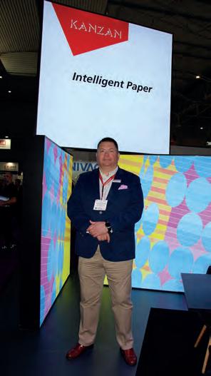 Con unas impresionantes cajas de luz y bajo el lema “Intelligent paper”, el fabricante alemán KANZAN Spezialpapiere, que forma parte de OJI Group, con sede en Japón y líder en la producción de papel, invitó a los asistentes a la feria a conocer su amplia gama de papeles y cartulinas térmicas, además de sus especialidades en tecnología inkjet. El papel térmico que sale de su fábrica en Düren combina la velocidad excepcional en la impresión con una precisión inigualable para una gran diversidad de aplicaciones. Su privilegiada ubicación geográfica le permite atender con agilidad a sus clientes europeos. Como novedad, KANZAN presentó en Labelexpo nuevos gramajes para aplicaciones Linerless, autoadhesivo sin soporte. “Es un producto bastante novedoso”, puntualiza Kristoffer, “en el sentido que reduce el desperdicio en el uso de etiquetas autoadhesivas. Todos los papeles de KANZAN son reciclables y cumplen con las regulaciones europeas en cuanto a contacto con alimentos, origen, especificaciones forestales y otras normativas en la industria del packaging”.