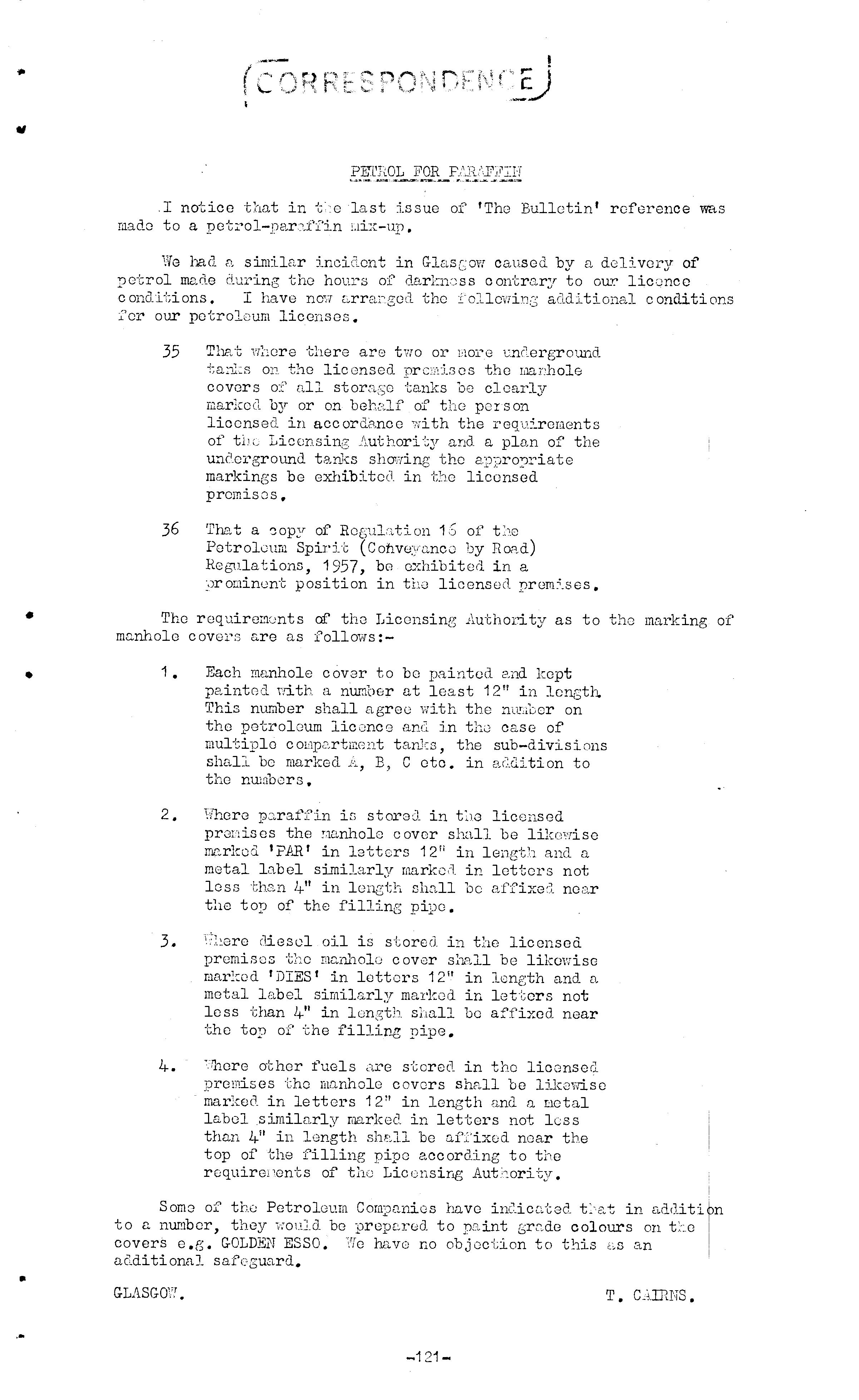 We had n sim:Llnr incicl.ont in Glasc;ovr caused by a dc;l)_vory of patrol made tho of darl:n:_;s s c ontro.r3r to our liconcc c onclitions. I have noYr c,rra.:"gd. the Lollovrii:-1,:::; additional c onclitions :.'.'or our potrol,;um liconsos.
