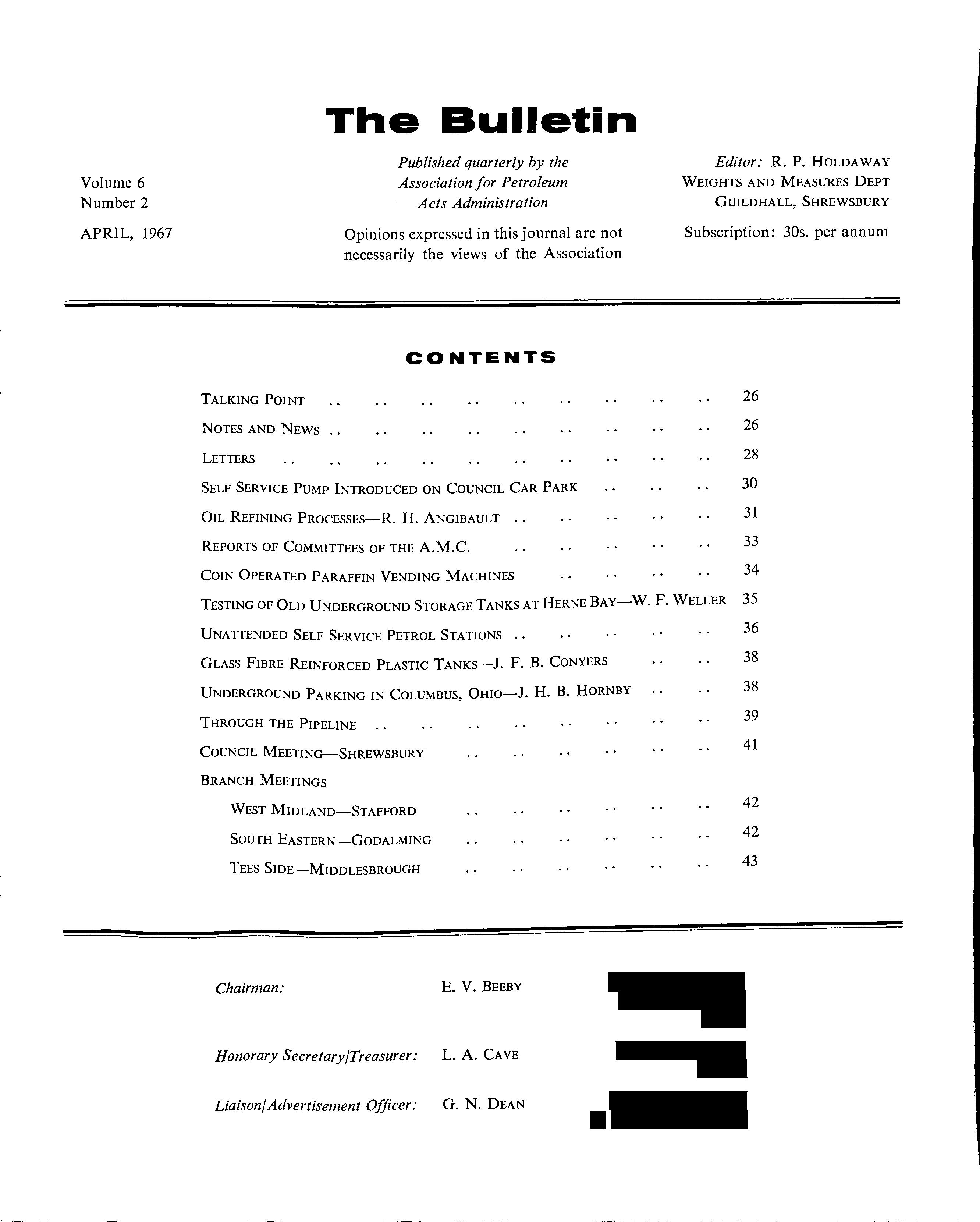 Membership of the Association has now been extended to 'Officer Members'. Any duly authorised Petroleum Officer is eligible for membership, and enquiries will be welcomed.
