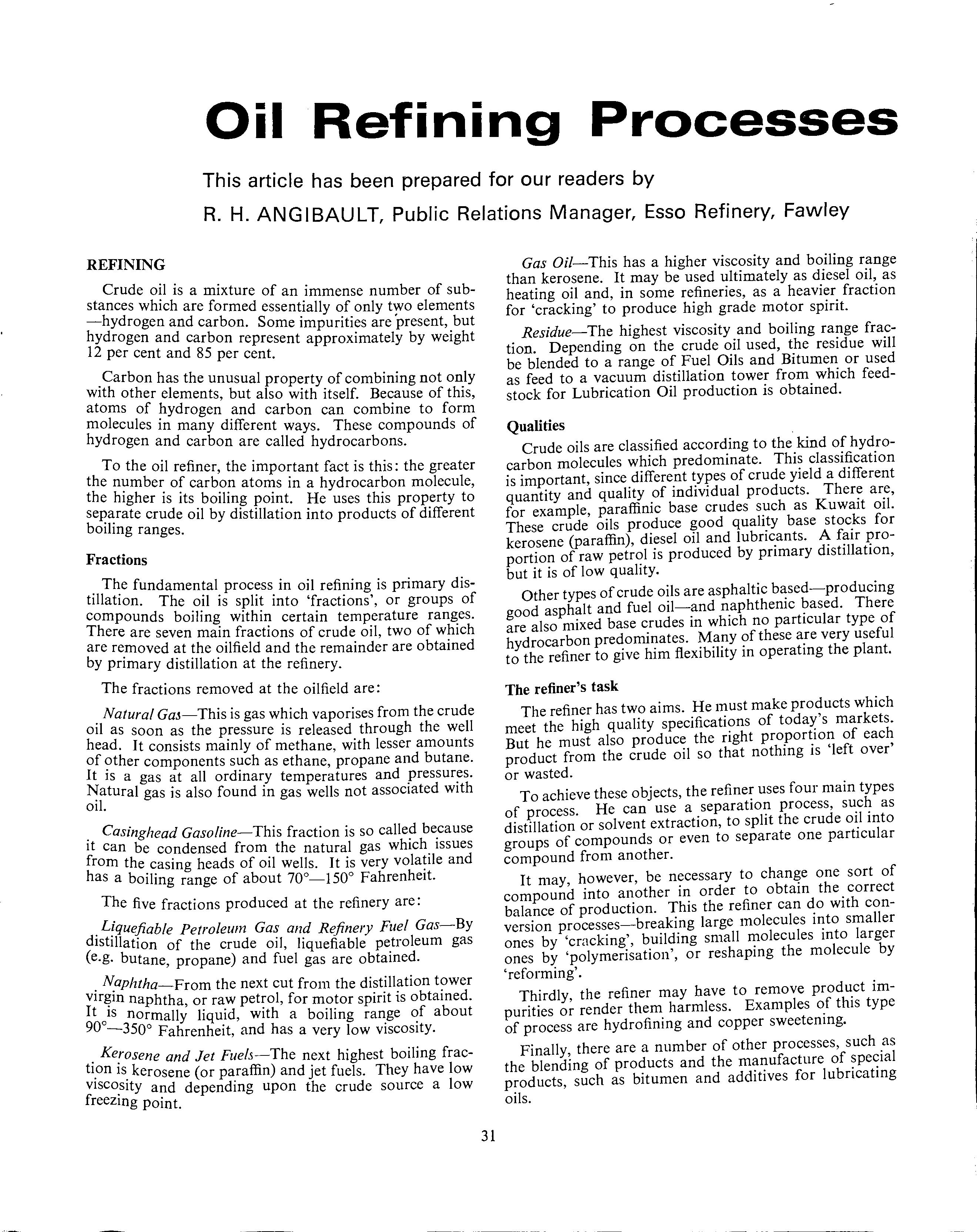 Another process unit-a Hydrofiner-for removing sulphur from heating oil and diesel fuel is under construction and is expected to come into operation during the first half of 1967.