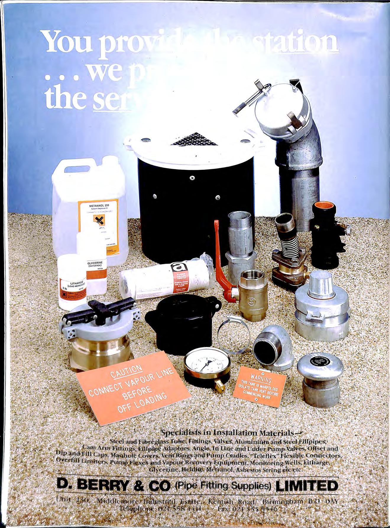 3s GALLON Pumps & Tanks (Shoreham) Ltd Est 1963 ADUR BOATYARD, OLD SHOREHAM ROAD SHOREHAM-BY-SEA, WEST SUSSEX, BN43 STA 0273-454831 FAX: 0273-464863 1991 43p LITRE A COMPANY STAFFED BY ENGINEERS CAPABLE OF MEETING THE DEMANDS OF MODERN FORECOURT SERVICE STATIONS •ALL PUMP TANK & PIPEWORK INSTALLATIONS - FIBREGLASS & STEEL • LARGE MODERN FACTORY WITT-I COMPLETE PUMP OVERHAUL TEST & REPAIR FAC/unES •LARGE PUMP STORAGE WAREHOUSE WITT-I SPARES FOR MOST TYPES OF EXISTING PUMPS BS5750 PART 1 QUALITY ASSURANCE CURRENTLY BEING WRITTEN & DEVELOPED FOR DESIGN, INSTALLATION & SERVICE Petroleum Installation Specialists Approved Installers For Fibreglass and Plastics Unit 10 Boundary Road Industrial Estate Haverhill Suffolk, CB9 7YH Tel: 0440 712505 Fax : 0440 712506