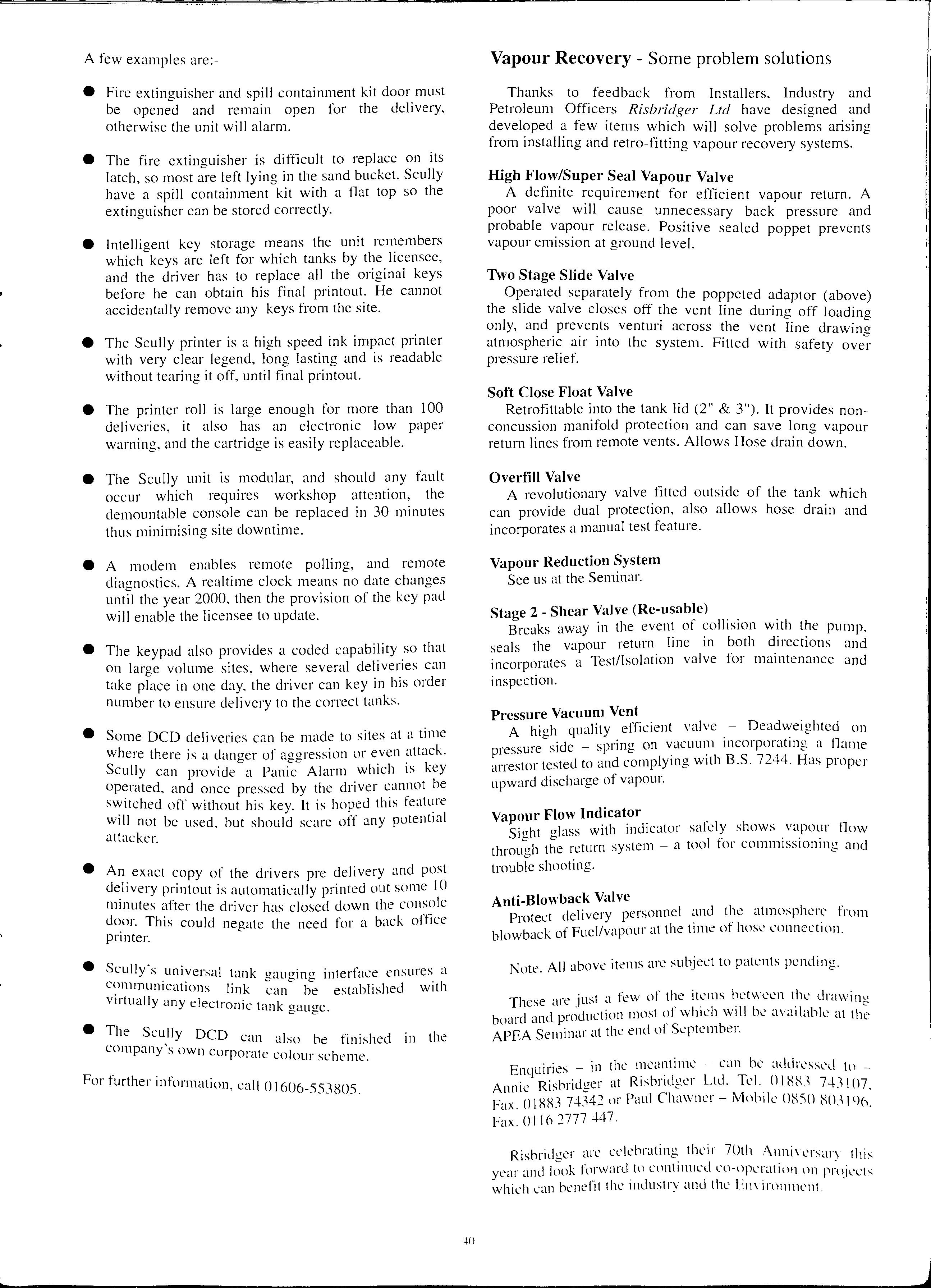 Thanks to feedback from Installers, Industry and Petroleum Officers Risbridger Ltd have designed and developed a few items which will solve problems arising from installing and retro-fitting vapour recovery systems.