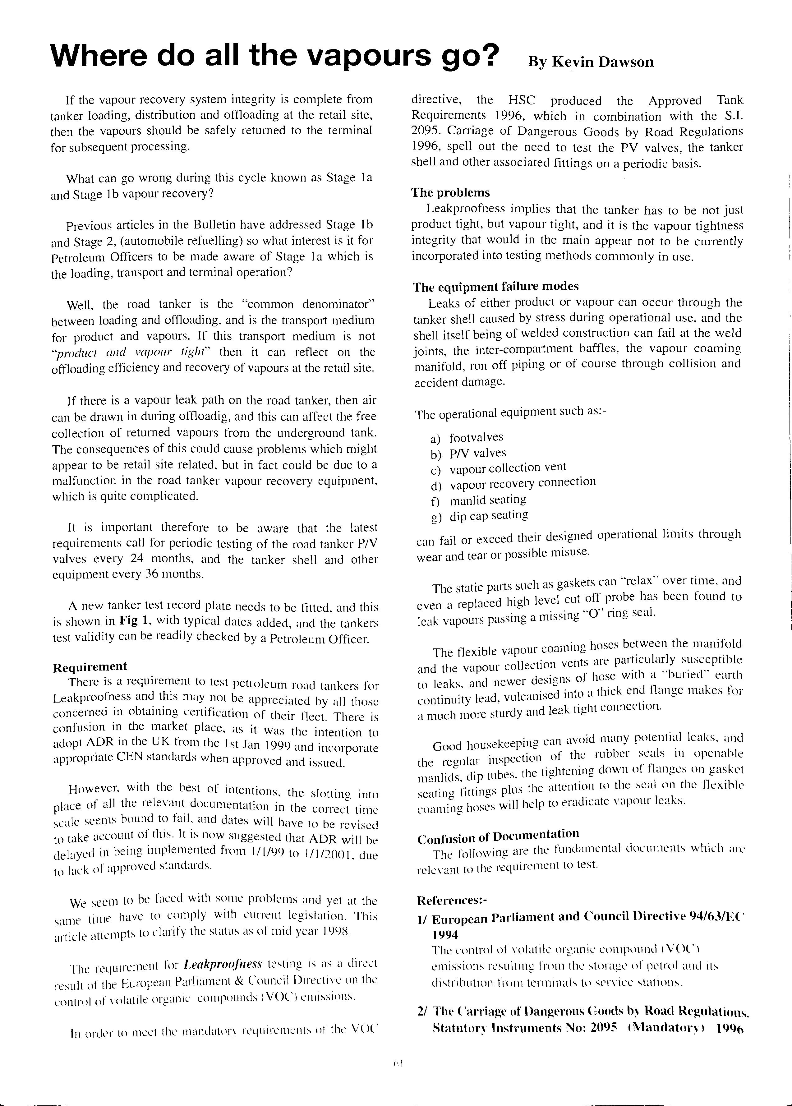 fitted on removabl e internal fill pipes, poor installation of internal fill pipes , to non vapour tight overfill prevention devices and even holes in th e wall of the internal fi ll pipes.