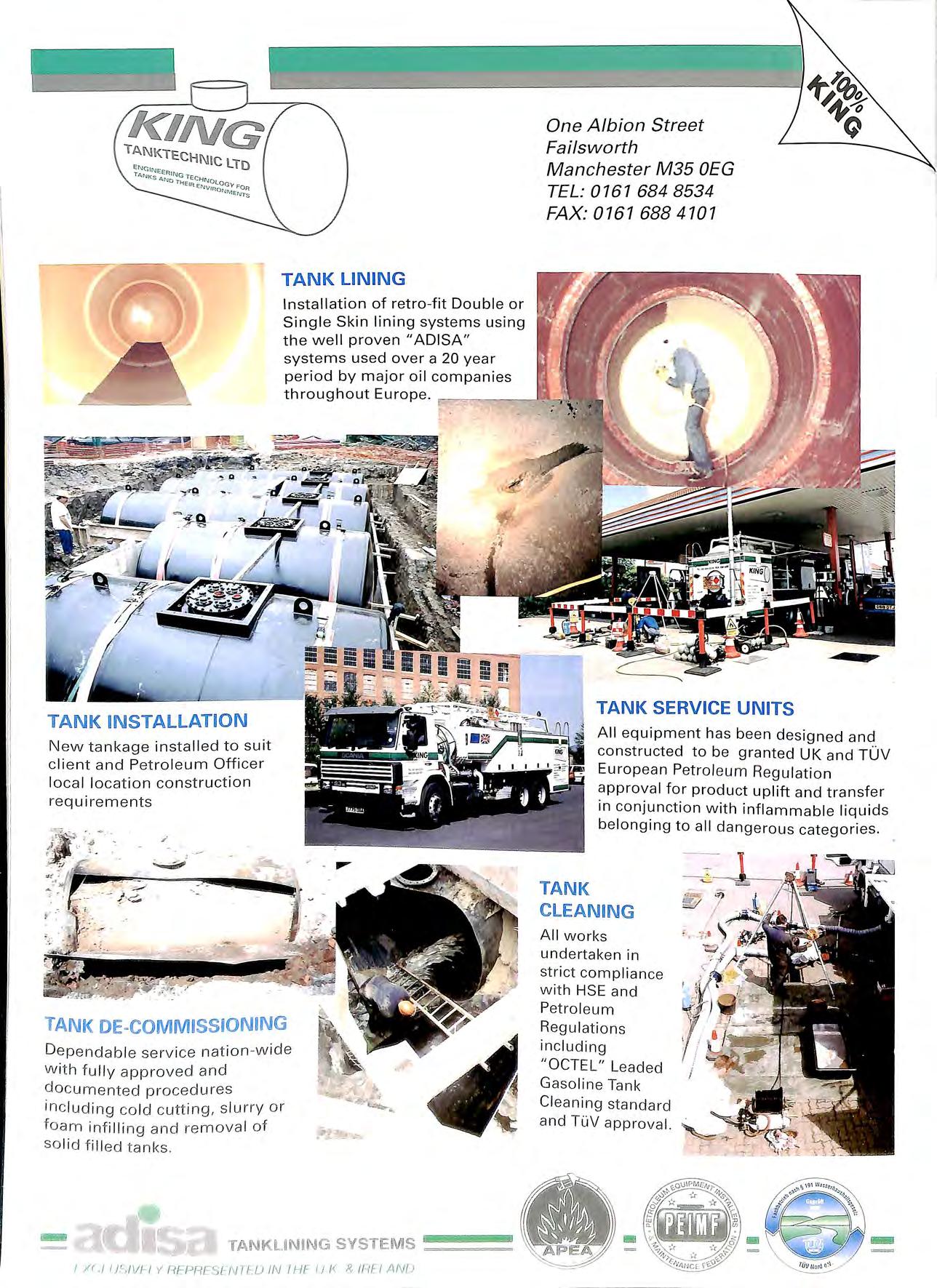 All works undertaken in strict complian ce with HSE and Petrol eum Regulations including " OCTEL " Leaded Gasoline Tank Cleaning standa r d and TuV approval