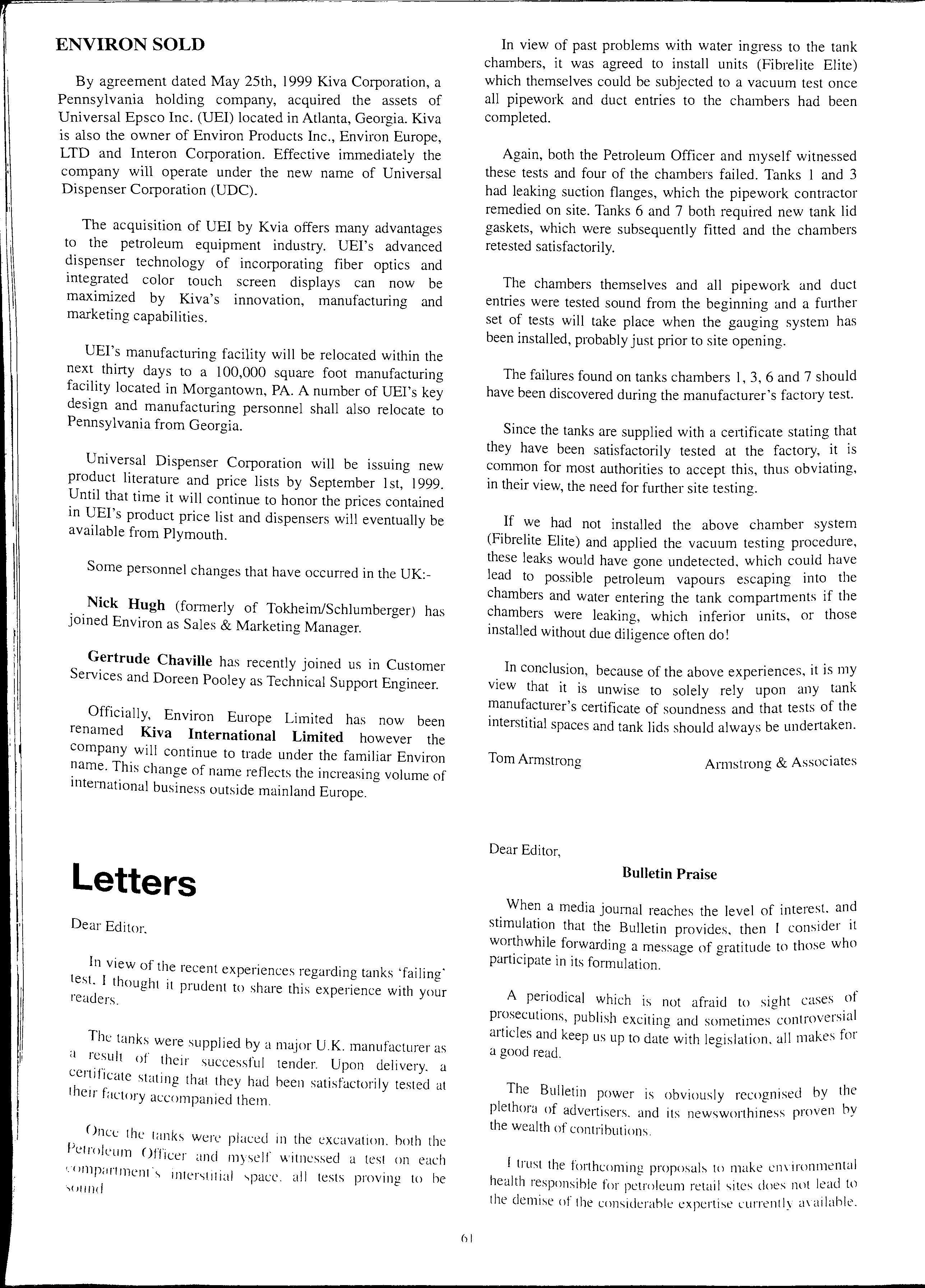 Total Oil were called to answer the questions of Council officials following a leak of SO.OOO litres of petrol from a garage in St Alb;ns. Three senior representatives faced the irate councillors to answer questions on why they were so slow to act over a leak which was leaving the tank at over 33% of the sales from the unleaded tank. Jeff Attwood d . . . . ,. d the committee that trector of petrol retmlmcr 1111orme 0 I 1998 80% was lost although the loss was apparent throug 1 · I · e·U" The general between November and February t us Y ' · 1 I d " ·own to an a arnung manager explained that the losses 1a 01 H t ted tll·it d d ·h t down e s a , rate before the tank was teste an s u . · d' .,,1·plill"irv b ·ub1ect to ' J seven people involved had een s J • llad been or nr111a cre1 , action and two includmg the sem 'd ;nvironmental dismissed. Ken Chichester the safetyd ;n nd petrol on the . 1 t tI ey ha 1 ou officer told the cmmmttee t ia 1. d . tile chalk around h I , the site an m water table 22 meters e OVI · • hwe been at risk. . d that residents may ' the site. He recogmse · t' fo ilino to take proper . . . d tl e 'ompany rn a o Councillors cnt1C1se 1 c the residents. In the . d I· " informat10n action and then e aymo tl e local Member ol • , 1 · . I ·ere 111c1dent 1 altermath ol t 11s me regime 1s made k' tank-testmg Parliament 1s as ·mg •1 f II t ks t'1 be tested. mandatory or a an · '