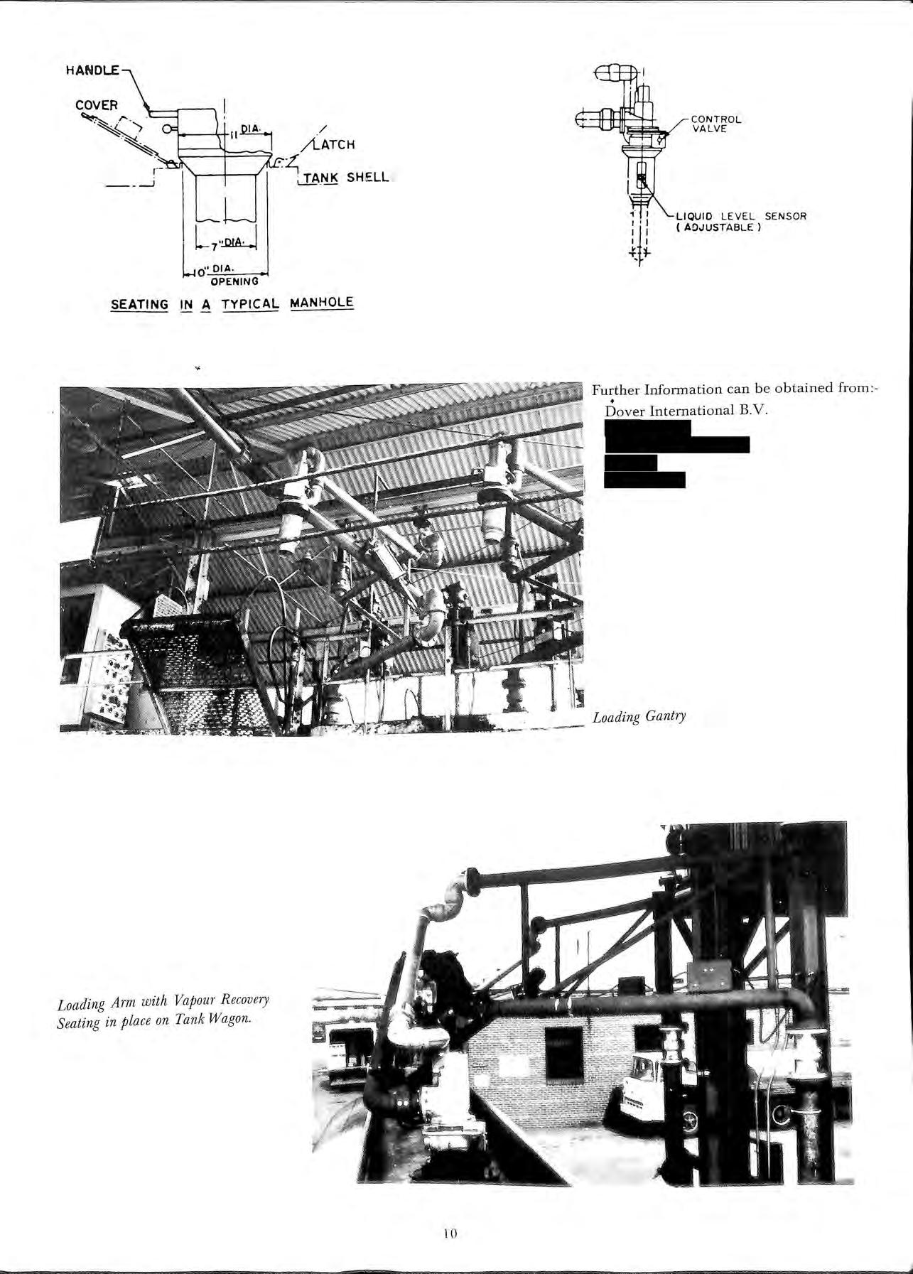 In the past safety of LPG as a motor fuel suspect: partly because of the necessity to keep It undel considerable pressure. The industry is confident that the comprehensive safety measures 11l1VIi incorporated 111 storage and dispensing svstems make LPG as safe to handle as any other motor fu:l, even in self-service situations. The safety measures include remote control vain's, supervised by the filling station operator, and automatic emergency cut-off valves in the dispenser itself. These lat ter valves are deSigned to operate if damage occurs, for example, due to a collision. Deliveries of LP(; cannot lw made unless the nozzle connection to the \ehide tank correct. Self sealing breakawa\ host' couplings pr!:'\ ent leakage in the event of the vehicie lwing driH'n ,1\\ <1\ \\ hilst still connected. Oppration is b\ a 'dead man's handlt" 01 button, which requirt's the upt'ratt1l" to t"t'rt cOl1tinllall11d Ilual pressure to ('Hert delivt'n.