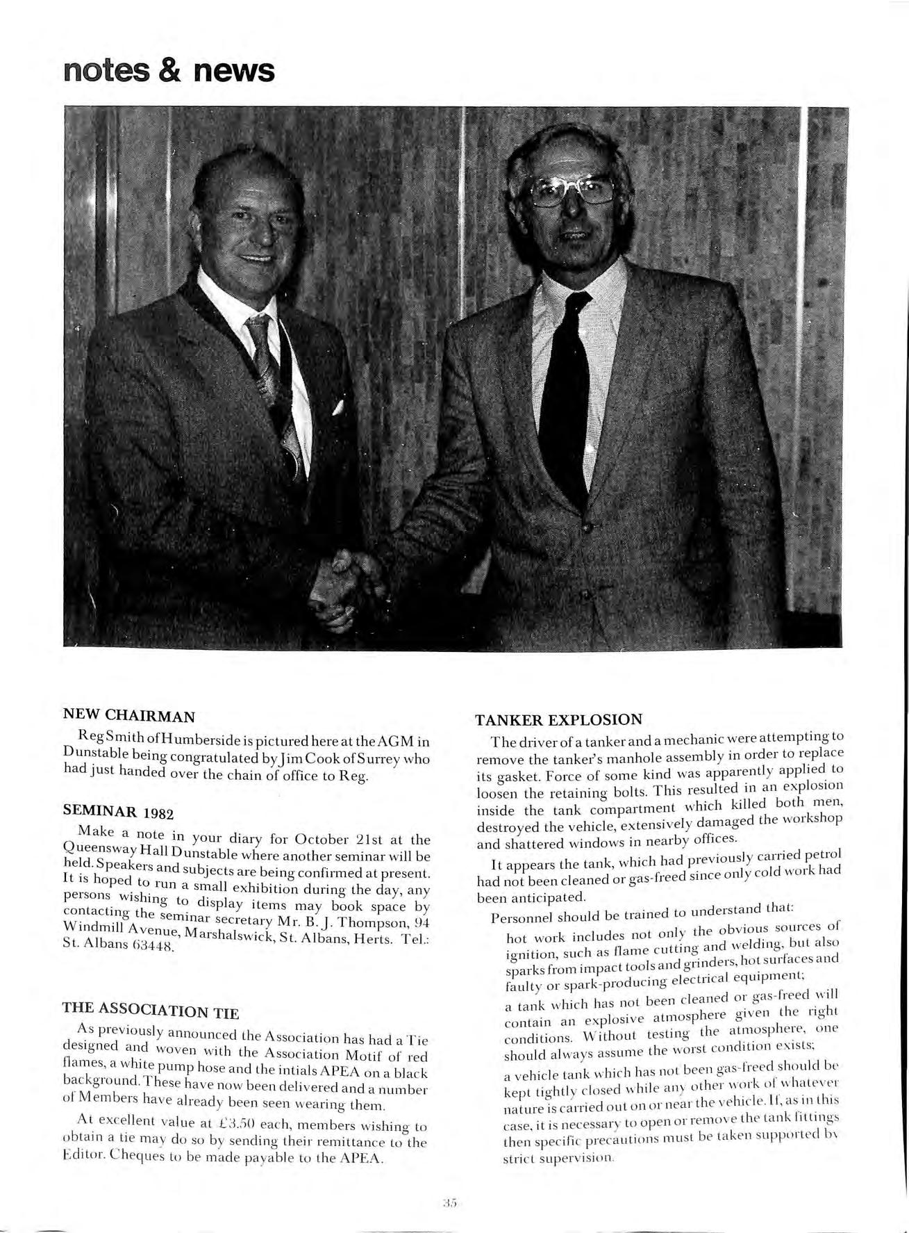 NOTES AND NEWS BELT DRIVES ON FORECOURT PETROL DISPENSERS