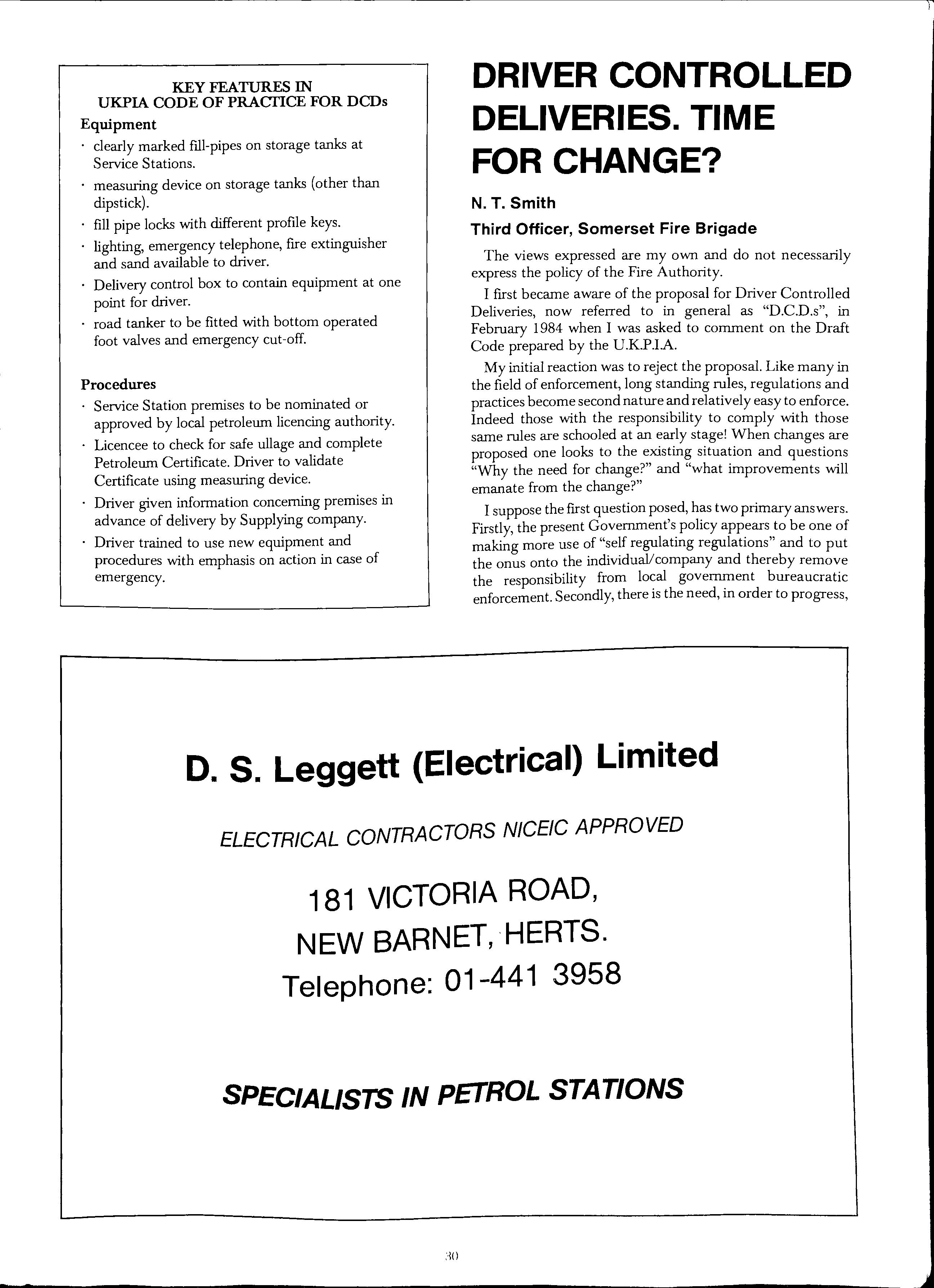 Following discussions with the Health and Safety Executive (HSE) in 1983, UK Petroleum Industry Association (UKPIA) commenced drafting a Code of Practice for Driver Controlled Deliveries (DCDs). About a year ago The Bulletin (April 1984 Volume 22, Number 2) printed one of the early drafts of this Code without making clear the status of the document and without notifiying UKPIA of its intention to print it. UKPIA welcomed the opportunity to put DCDs into context at the APEA annual conference at Dunstable in September 1984. Following on from the presentation in September this article aims to develop the subject further by considering the benefits of a change in legilsation within the wider framework of a changing operating environment.