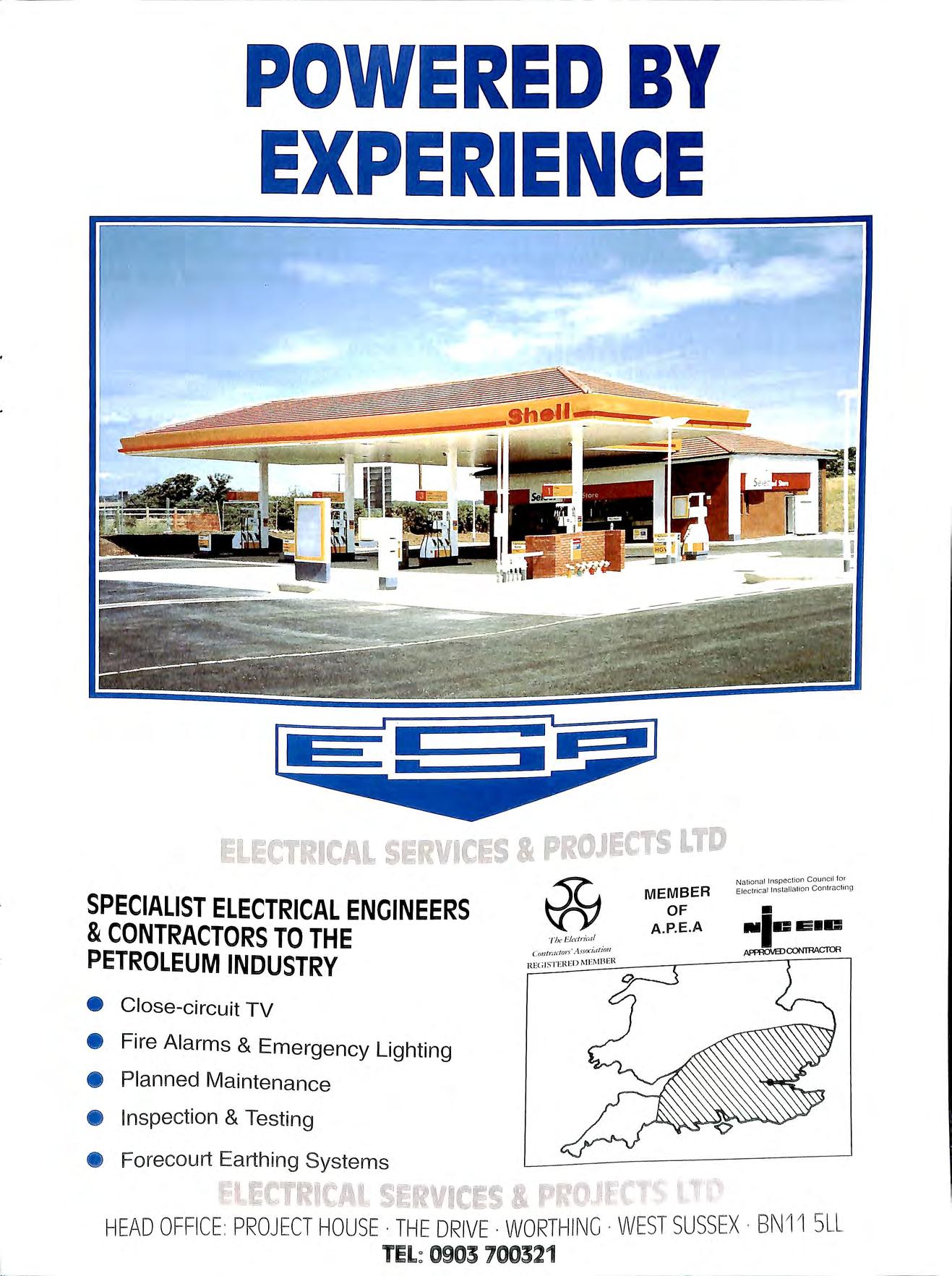 POWERED BY EXPERIENCE c s SPECIALIST ELECTRICAL ENGINEERS & CONTRACTORS TO THE PETROLEUM INDUSTRY • Close-circuit TV • Fire Alarms & Emergency Lighting • Planned Maintenance • Inspection & Testing • Forecourt Earthing S ystems S & OJEC Cv11t n1do r s' ;\ssoc1i1tin11 REl;iSTEHE D i\ fEi\ !HEll LTD MEMBER OF A.P.E.A National Inspec tion Council for Elec tr cal Installation Co ntractin g • •1c&1c APffiCMDCONTRACTOR HEAD OFFICE : PROJECT HOUSE · THE DRIVE . WORTHING · WEST SUSS EX · BN11 SLL TEL: 0903 700321
