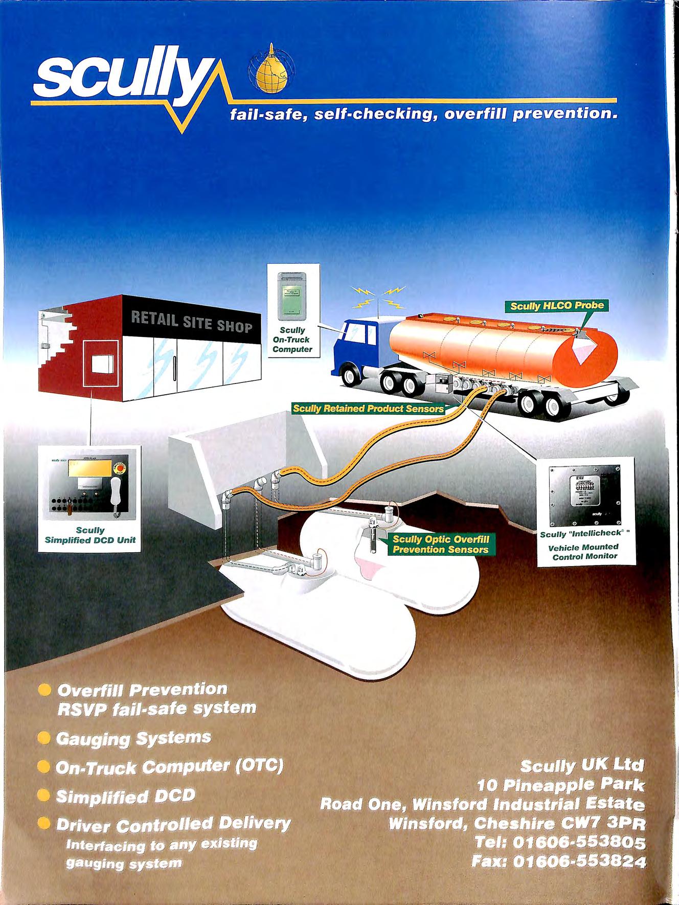 Tank G auging and Leak Detection \ I I ' 40 60 / -20 so100 a {II 8 HHL HL U. EURCGAUGB Lavol AJarms tk!udiu;& k: .. I TES T REFILL I LIQUID FILLED AND DRY AIR PRESSURE LEAK DETECTION SYSTEMS FOR STEEL OR GRP DOUBLE SKIN TANKS. LEAK DETECTION SYSTEMS FOR DOUBLE CONTAINMENT PIPES, ACCESS CHAMBERS AND PUMP ISLAND SUMPS. "PROLEVEL" TANK GAUGING SYSTEM FOR UP TO 16 TANKS. PC AND MODEM COMPATIBLE FOR LOCAL AND REMOTE MONITORING. "TANKGUARD" LOW COST ELECTRONIC TANK GAUGING SYSTEM. "TANKMATE 160' ' SELF-POWERED TANK GAUGE FOR DIESEL AND GAS OIL. INTERCEPTOR AND OIL SEPARATOR LEVEL ALARM SYSTEMS. BS EN ISO 9001 QUALITY ASSURANCE. ALL SYSTEMS MEET RELEVANT SAFETY STANDARDS. EEx ia /IC FOR ZONE O AND EEx ib /IC FOR ZONES 1 AND 2 . .... .. .... ..... . . ... . . .... . . .. . . ... ........... . .. . ..... Why not talk to the specia/ists:EUROGAUGE COMPANY LIMITED IMBERHORNE LANE, EAST GRINSTEAD , WEST SUSSEX RH191RF Tel: 01342 323641 Fax : 01342 315513 Qitality services for today 's forecoitrt HIGH QUALITY RE-I MAGING OF PUMPS, CANOPIES, SHOPS POLE SIGN ERECTION & MODIFICATION PLANNED IMAGE MAINTENANCE PROGRAMMES PUMPS & EQUIPMENT= HAULAGE, STORAGE & DISTRIBUTION Valley Road, Cinderford, Gloucester GL 14 2NY Telephone : 0594 826364 Fax: 0594 822807