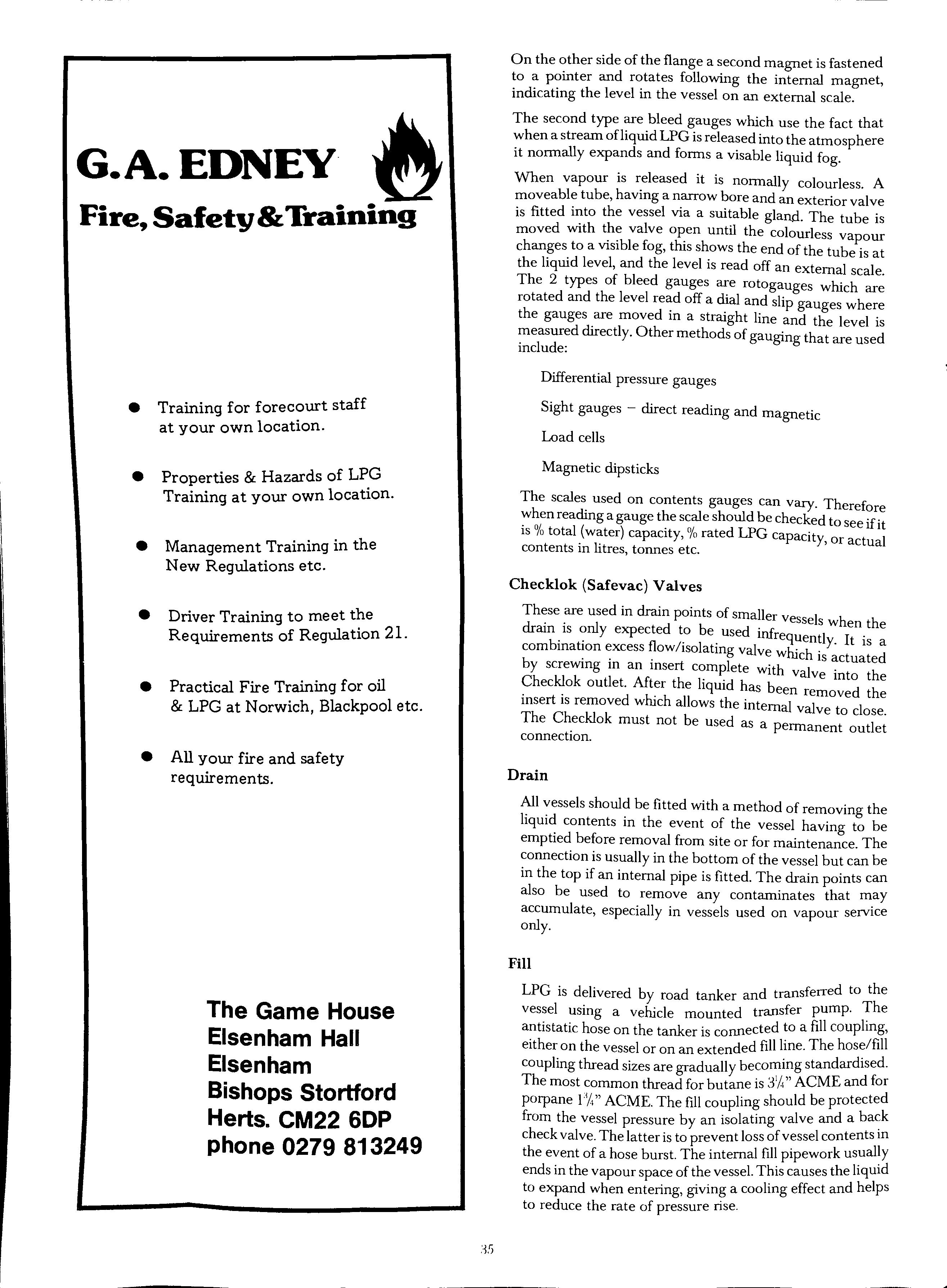 • Practical Fire Training for oil & LPG at Norwich, Blackpool etc.