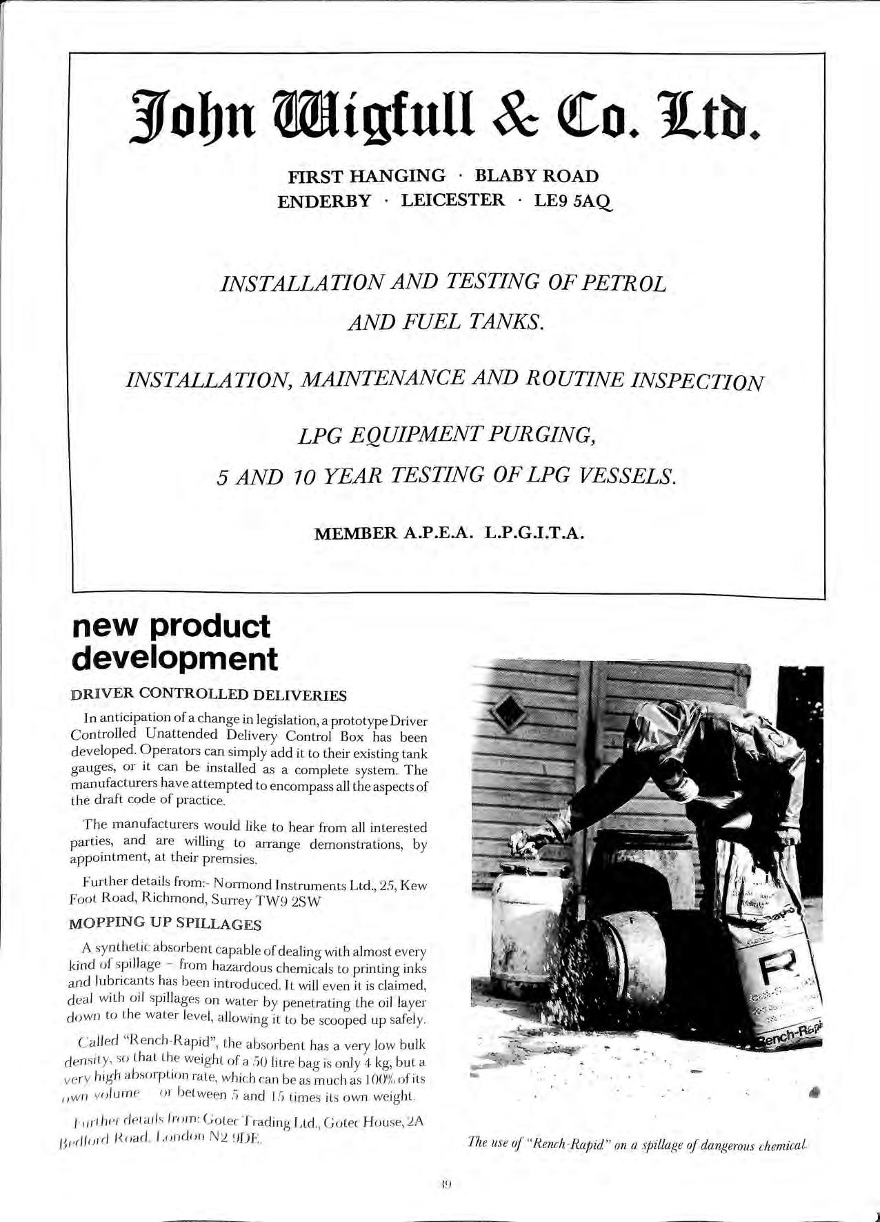 The van complete with drum, which was leaking and only had a cloth stuck in the top, was then driven off. The driver left the van outside a house for about an hour and on his return found the van awash with petrol. The Trading Standards Officer, police and fire were called and the van washed out, taken to a place of safety and the petrol burned. The petrol had become contaminated by the contents of the ilium (bitumen of some sort) and was useless as fuel.