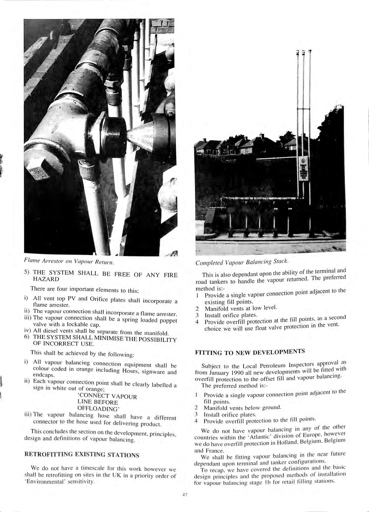 The ability to handl e the vapour at th e te rminal a nd the road. tanker exists, although Re sea rch a nd Development contmues on the mo st effective means of condensino th e vapour back to a hydroc a rbon liquid . "'