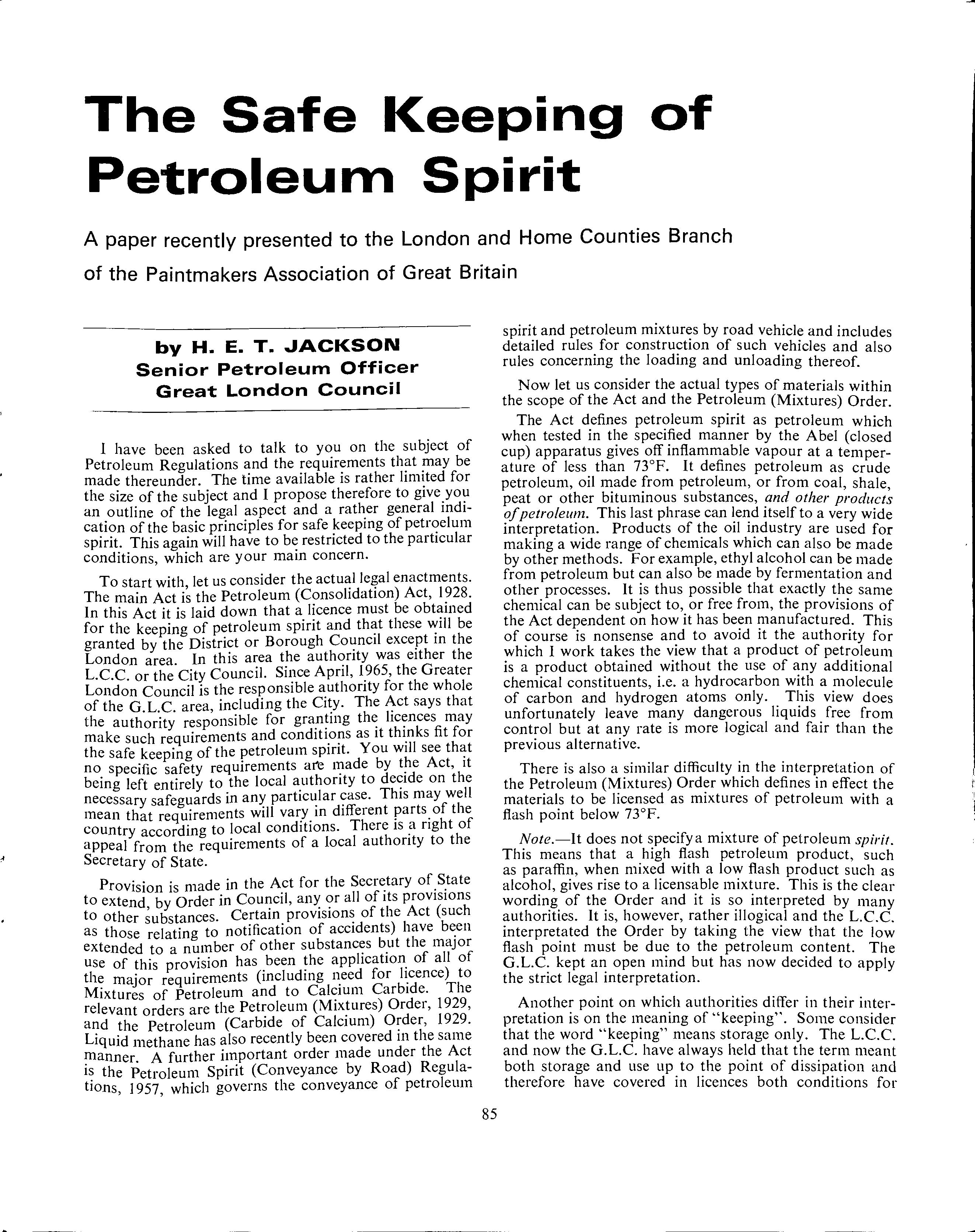 The need for a practical handbook for the Petroleum Officer has been apparent for a very long time. Mr. Good, a Public Health Inspector with long experience as a Petroleum Officer, has attempted to fill this need.