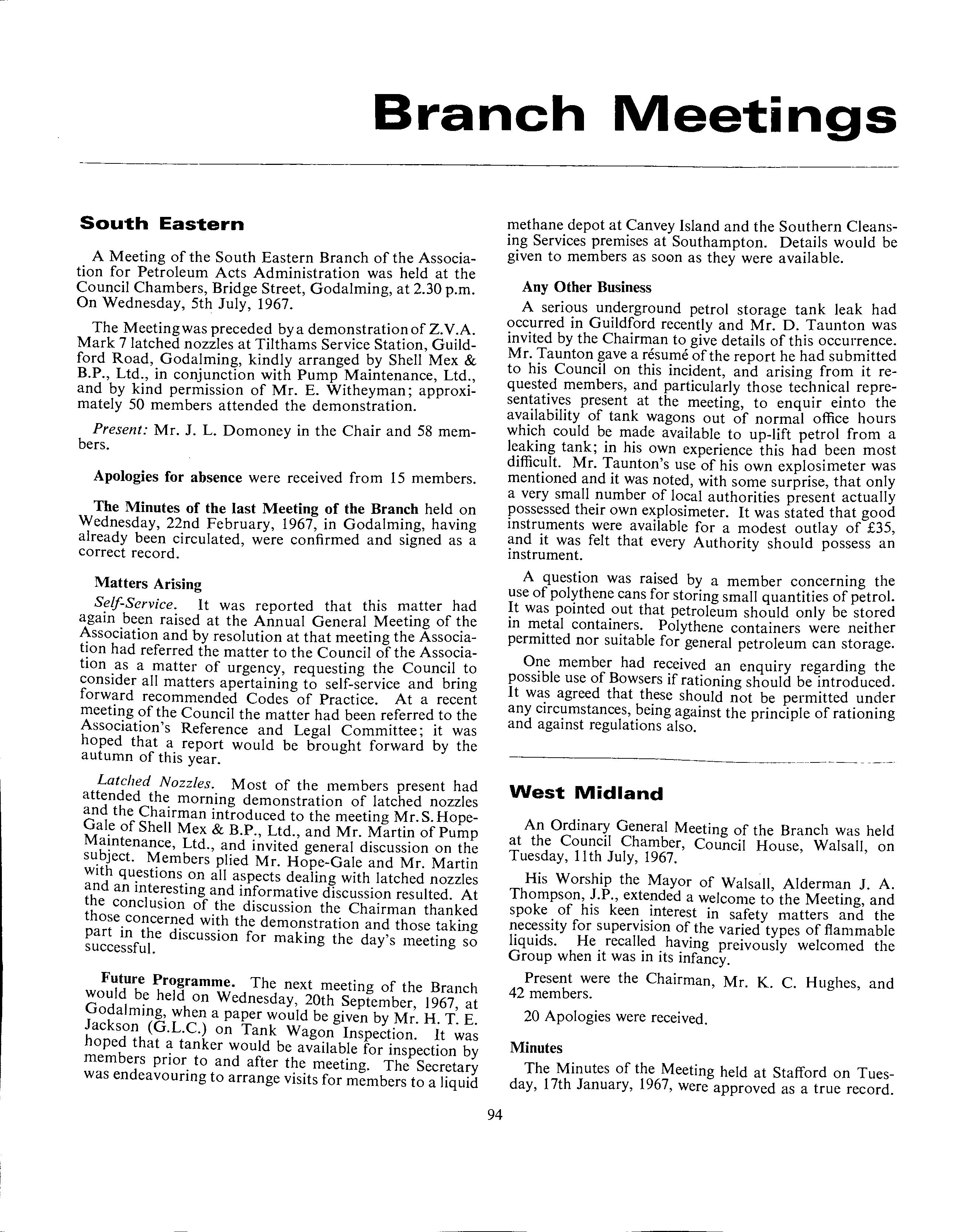 M. T. R. BowenA First for B.P. A Message from the Chairman Appeal to Home Office-Southend-on-Sea C.B. Air Heaters Association of Municipal Corporation Reports Attingham, 1967-W. H. D. Rundle B.P. Adopts the Blender Pump-G. Mayhew Boys Escape Blast