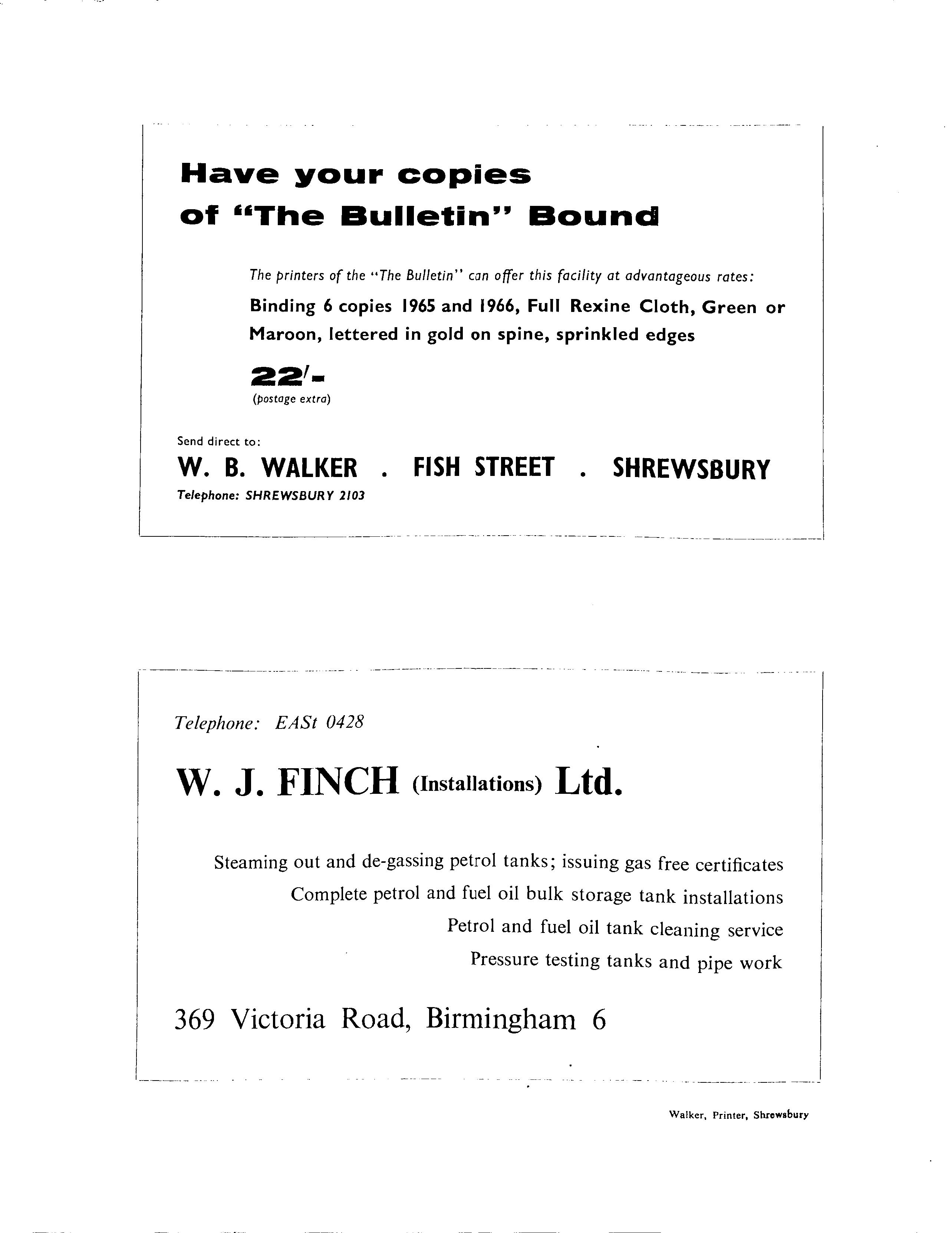 Shrewsbury, 7th March, 1967 Worcester, 8th June, 1967