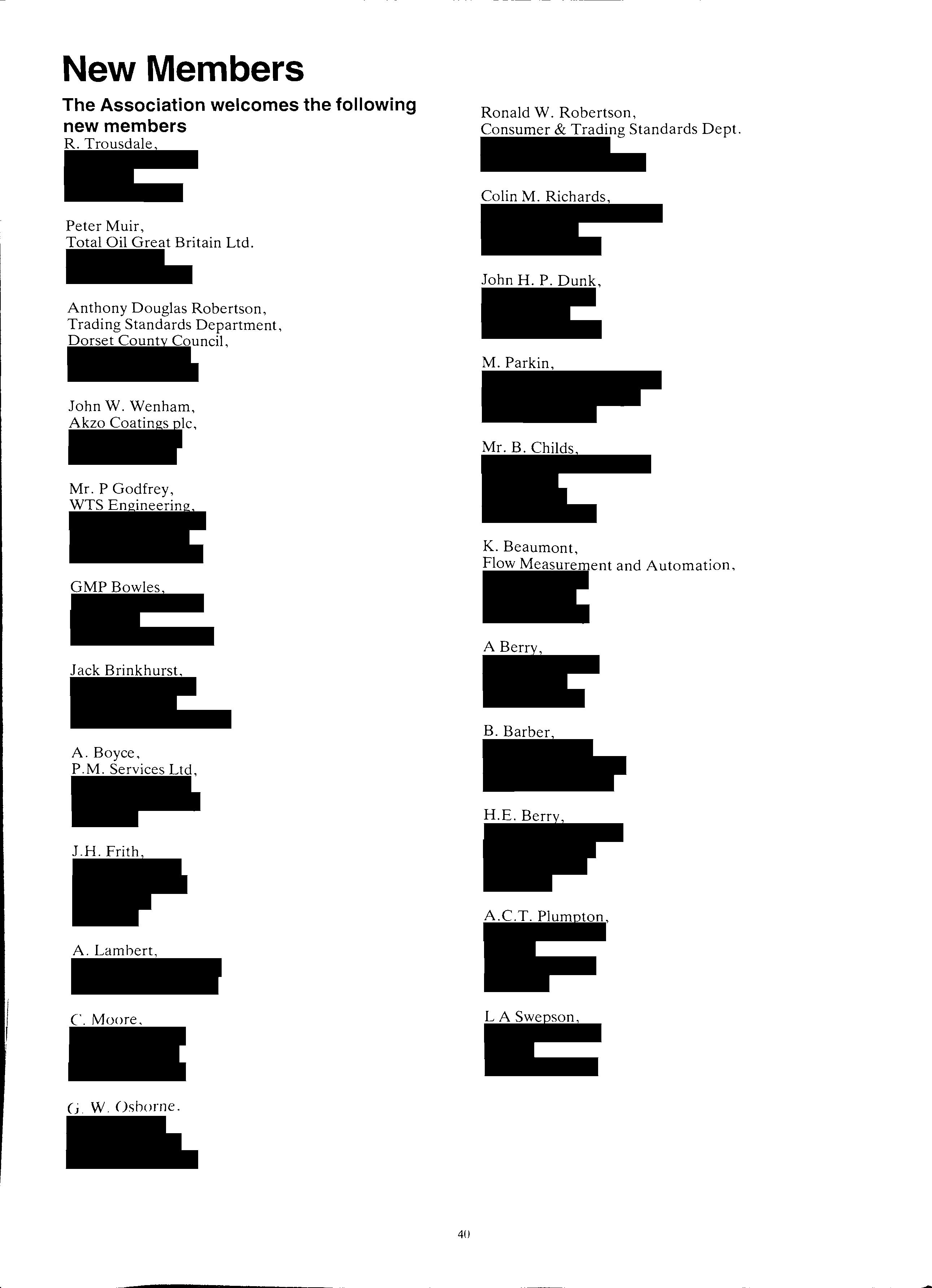 The Association welcomes the following new members R. Trousdale, Peter Muir, Total Oil Great Britain Ltd.