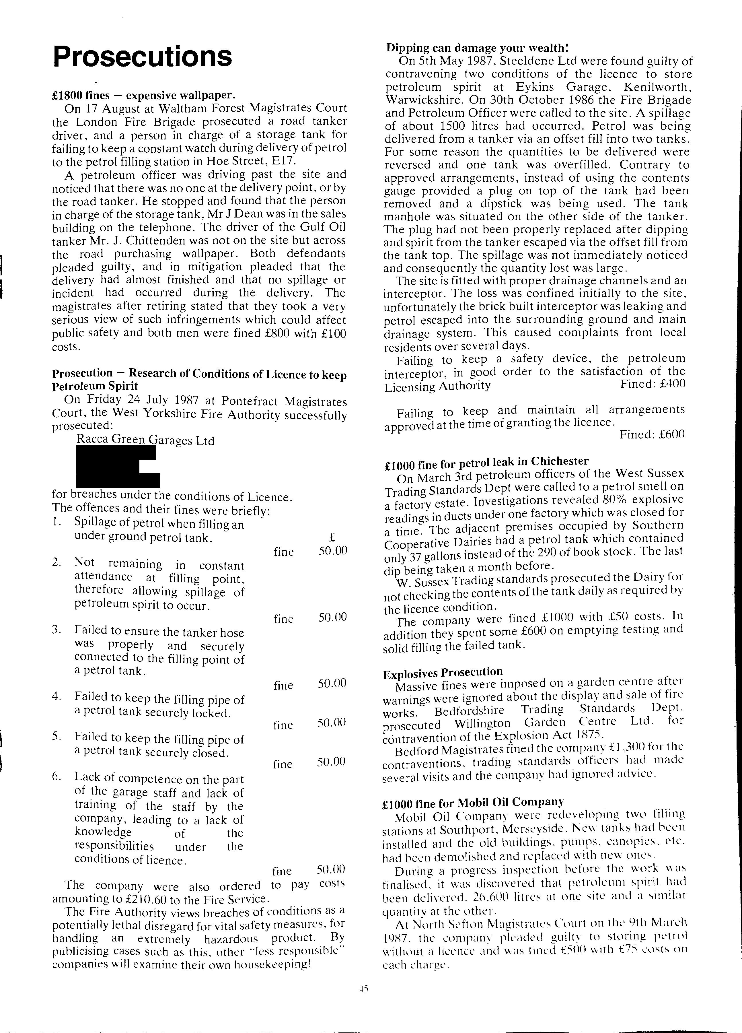 One trade journal advised its readers be as petroleum officers were showing more mterest m cases. They are however only responding to the nsmg number of incidents by taking offenders to court .... as this edition reports.