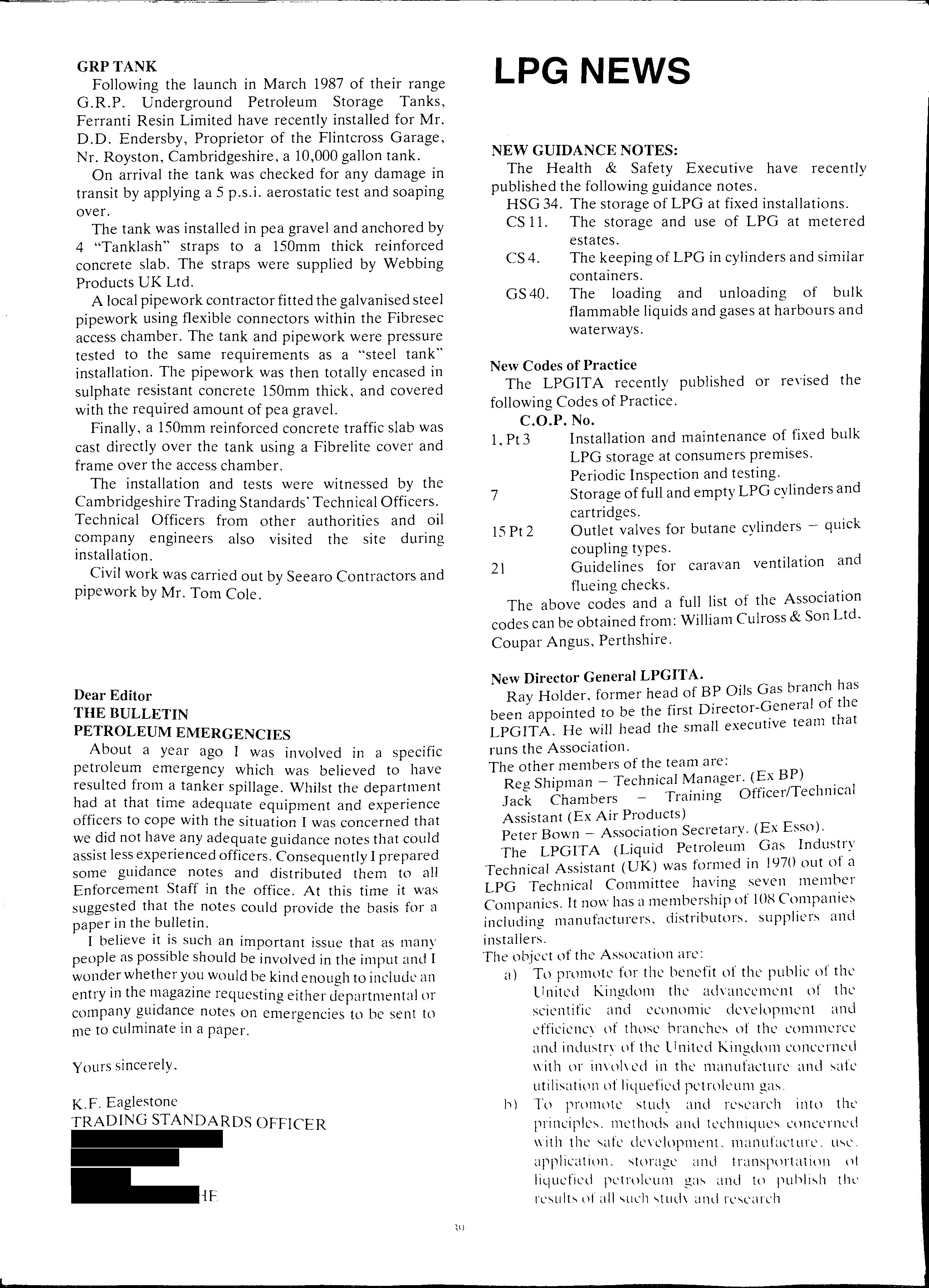 Contents TALKING POINT NOTES & NEWS LPGNEWS NEW MEMBERS UNLEADED PETROL HEAVY FINE AT CROWN COURT PROSECUTIONS NITROGEN FOAM INERTING WIRE V TEXTILE PETROL HOSE