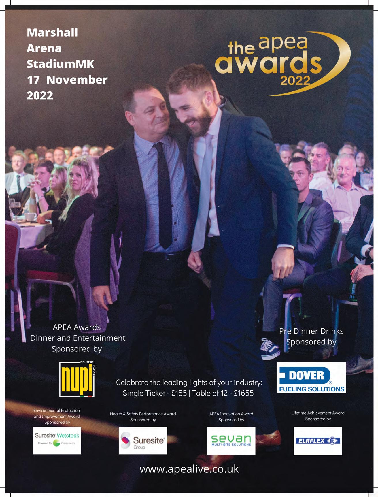 The APEA Awards are live and you can enter the awards by going to www.apealive.co.uk/2022/awards/enter-the-awards/ Deadline for entries: 23rd September 2022.