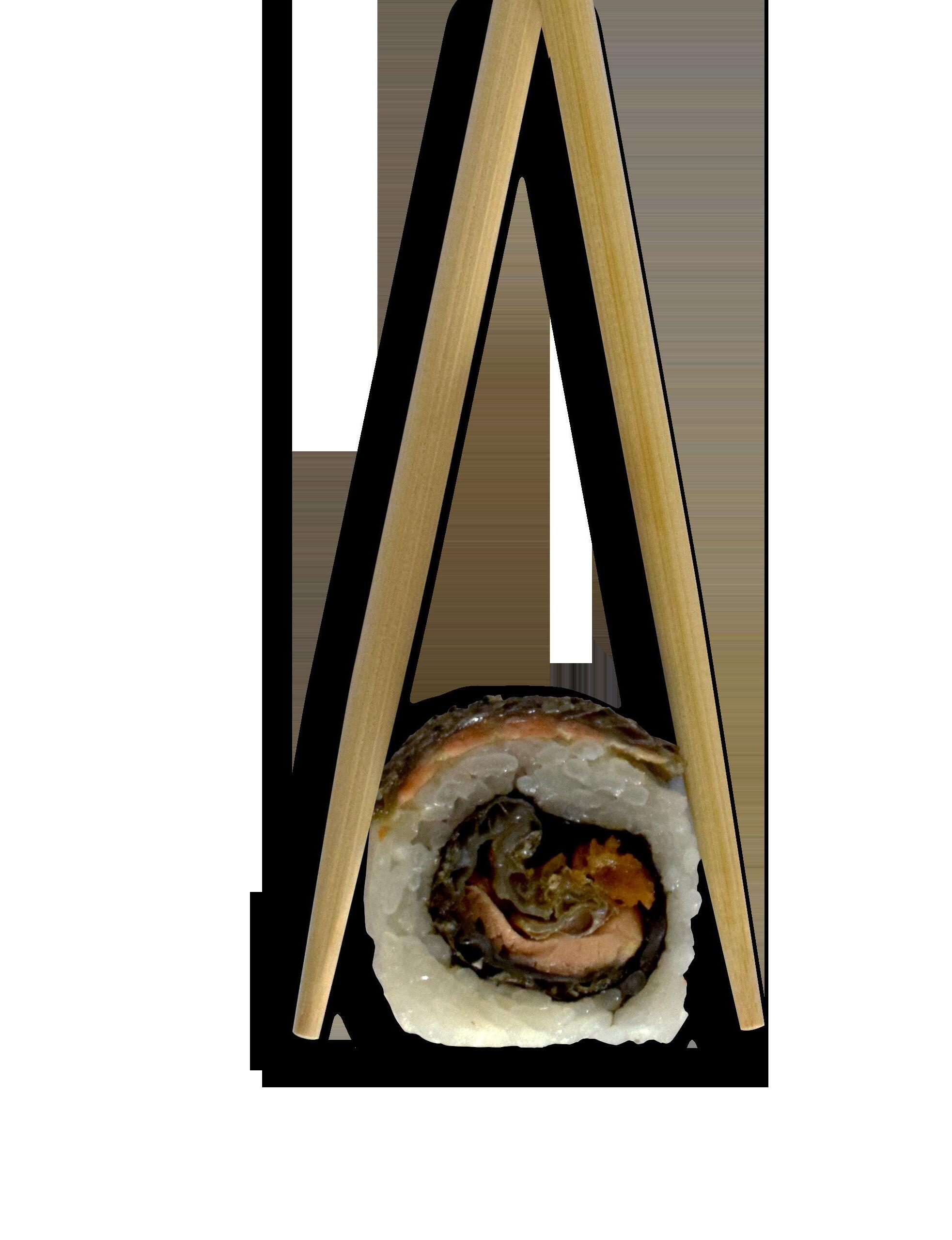 Maki Relleno con Arróz Japónico, Kanikama, Mayonesa Spicy, Aguacate y Langostino Crispy, Envuelto en papel de soya servido con salsa ponzu y mayonesa Japonesa.