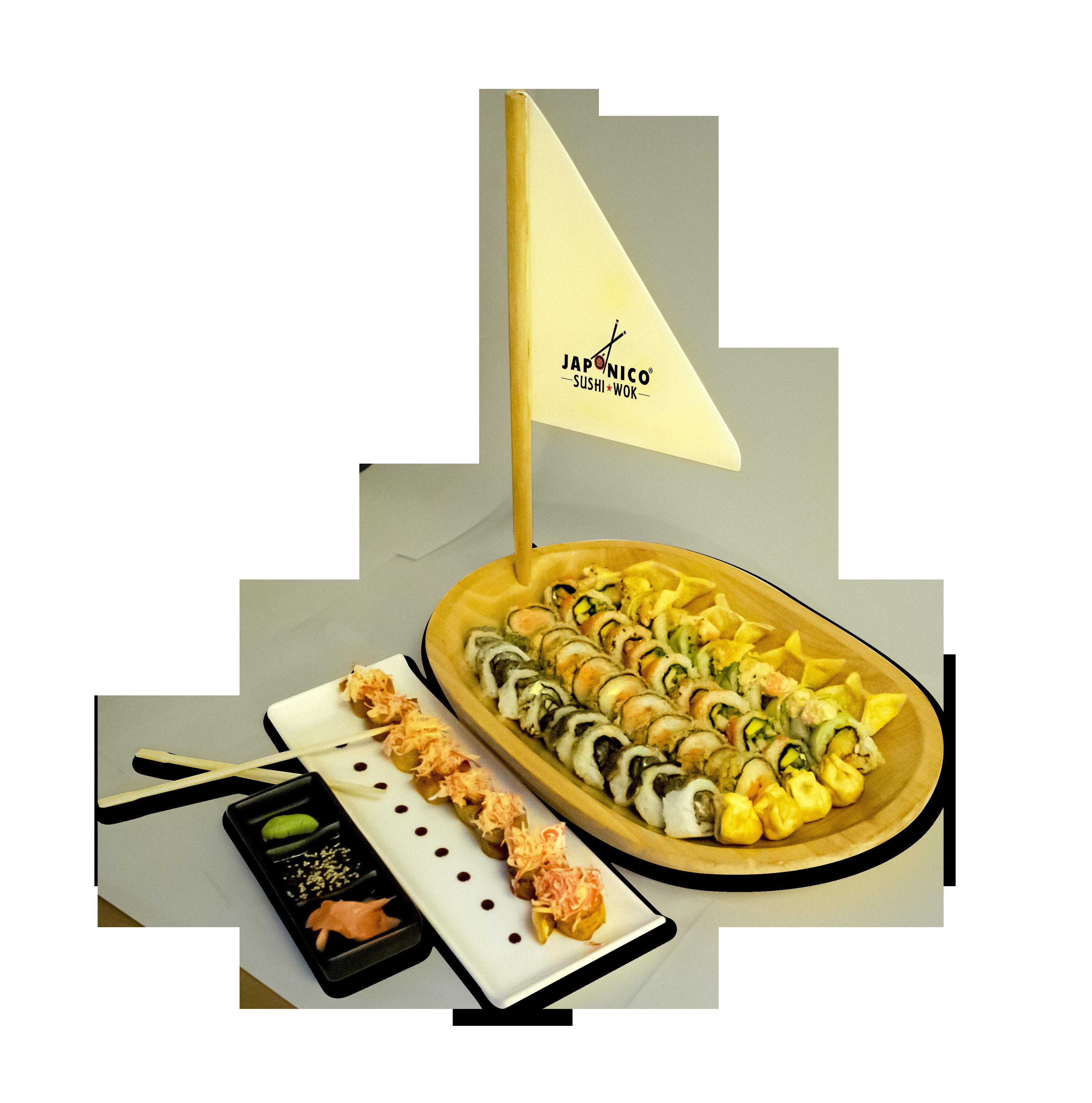 28 Bocados entre sushi, entrada y postre (10 bocados) de Philadelphia Roll | (10 bocados) de Dinamita Roll | 4 bocados de Coctel Roll | 4 unidades de Karanwanton | 4 unidades de LYCHEE WONTON