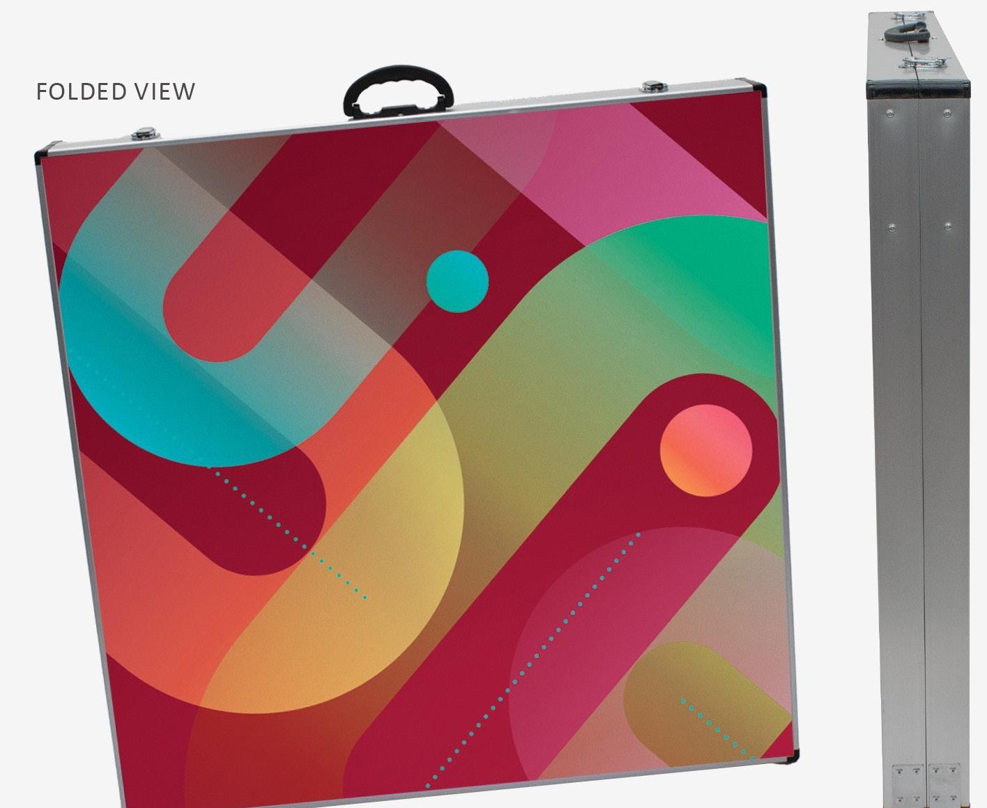 With two EuroFit Tabletop Straight Walls and a Convertible table throw, this versatile combo can be displayed in three distinct ways.