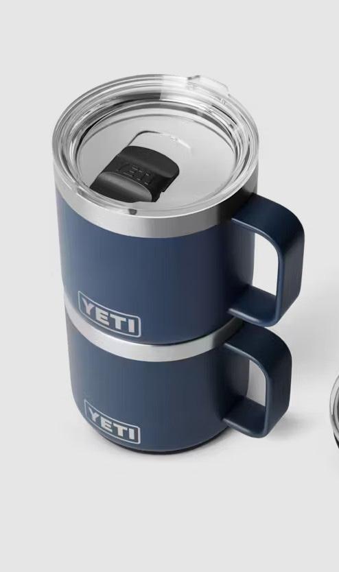 “The YETI® 10 oz and 14 oz Stackable Mugs are re-launching with a smarter, tougher design. Now built with DuraSip™ Ceramic Lining – a fused ceramic interior that resists stains, wipes clean easily, and won’t hold onto yesterday’s coffee flavor.”)