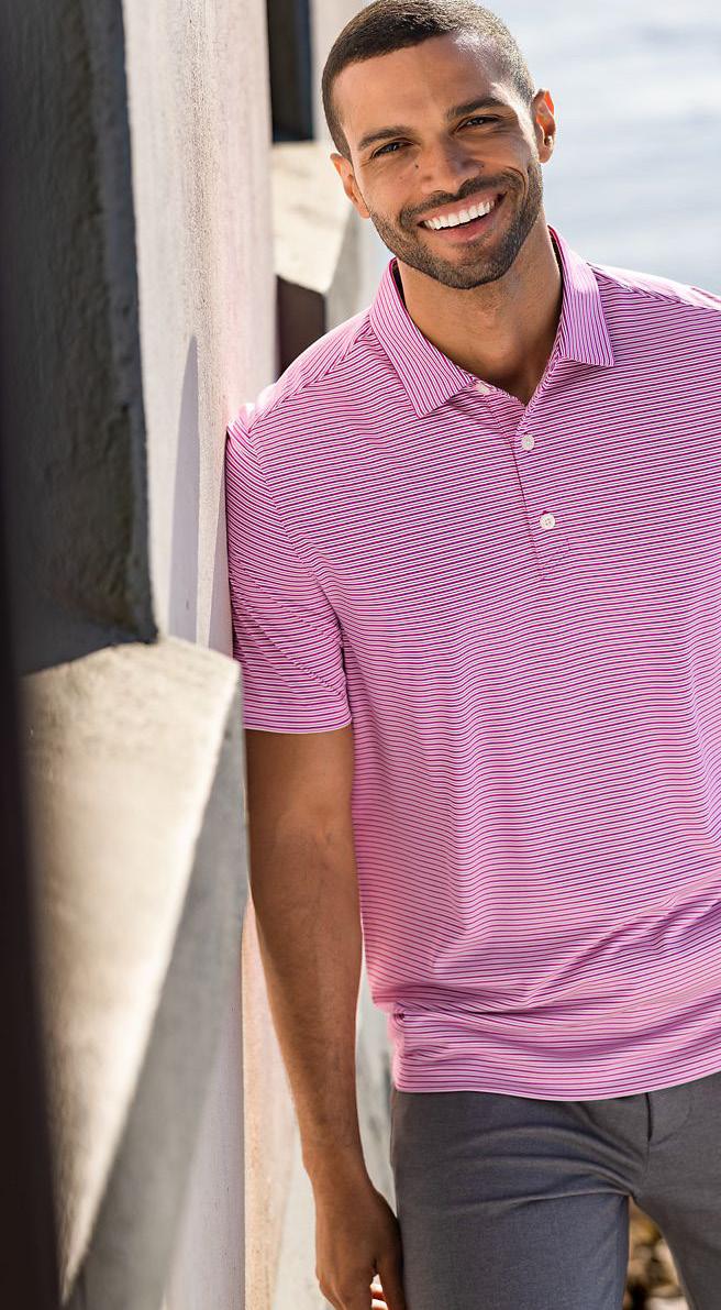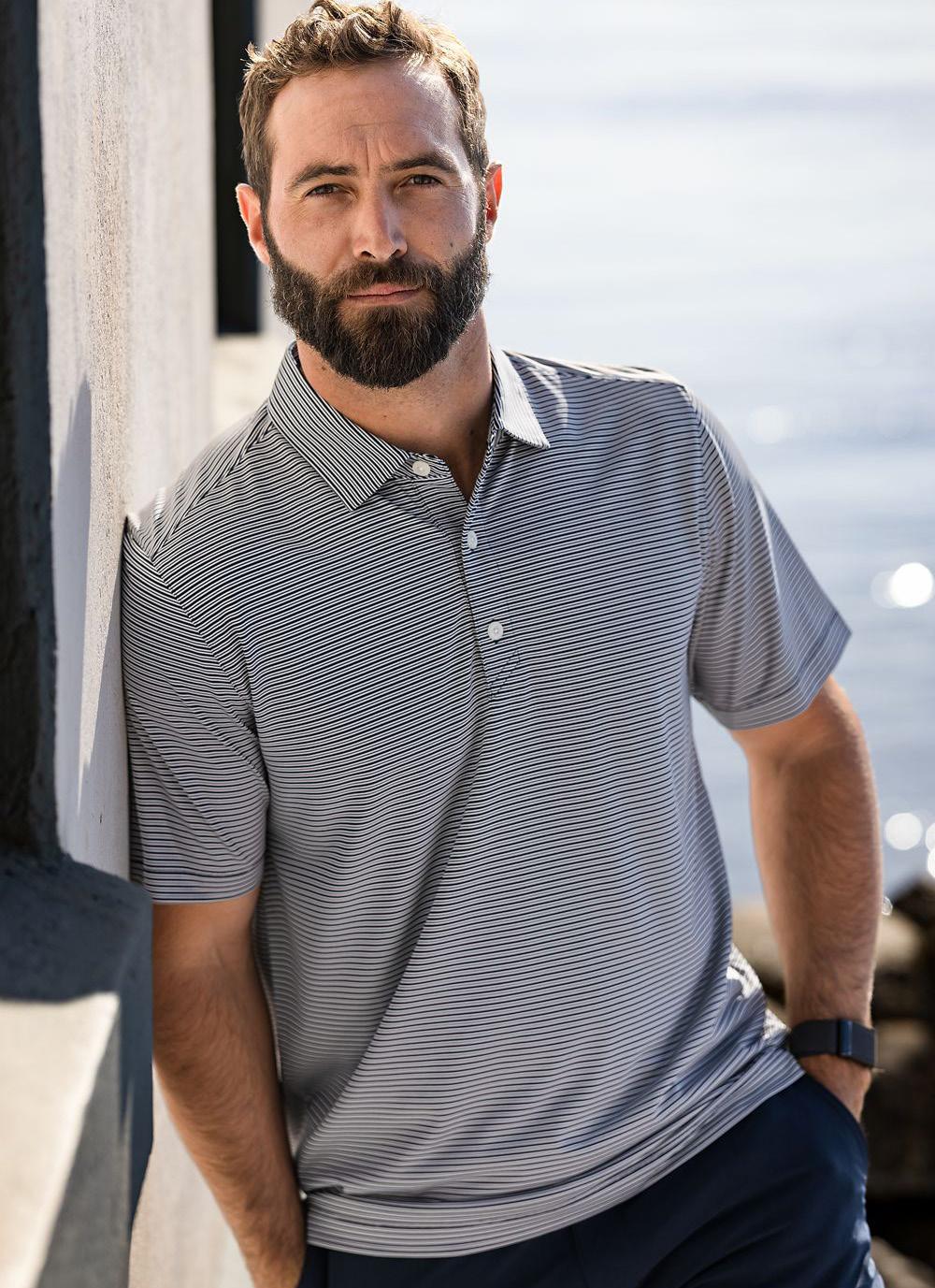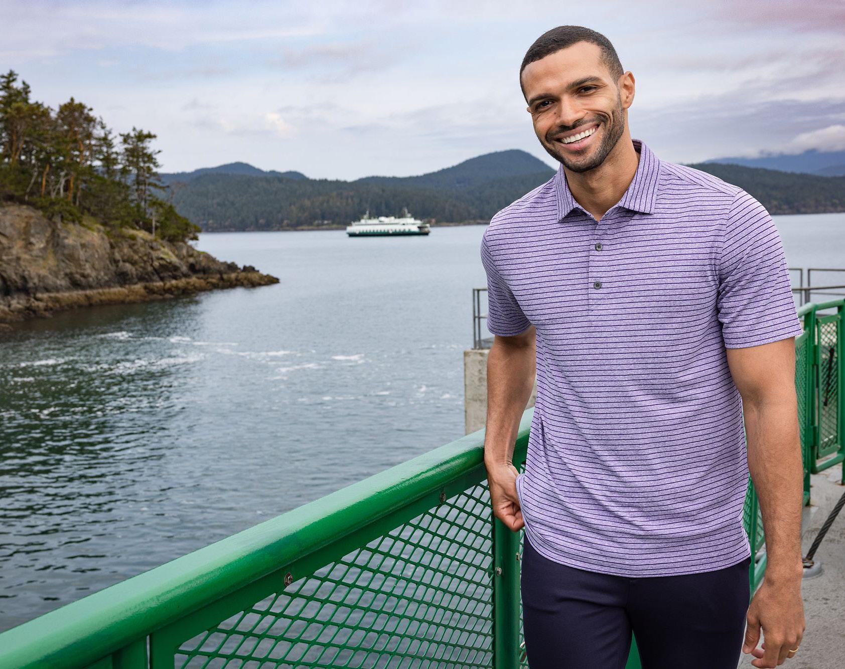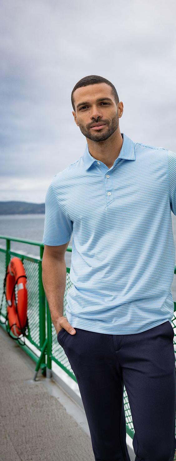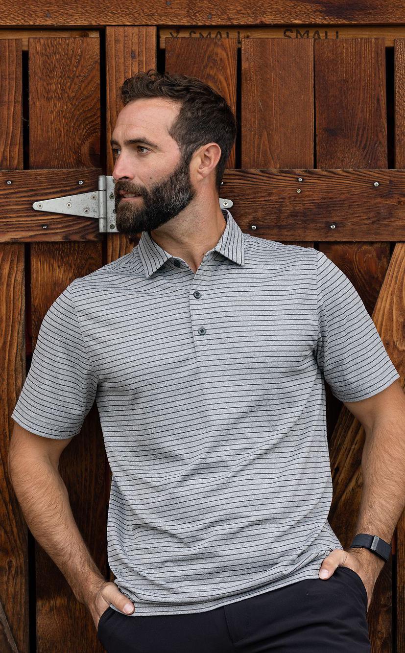 The iconic short sleeve Forge Eco Heather Stripe Recycled Polo is engineered with 4-way stretch for exceptional versatility, designed to be your favorite sustainable super soft men’s short sleeve polo for golf, the clubhouse the office, travel, work from home, or wherever adventure takes you. Supremely soft and stretchy with a modern clean look, the moisture wicking, high quality Forge Eco Heather Stripe polo is a perfect blend of UPF sun protection certified eco-friendly polyester and spandex, resulting in the most versatile, sustainable and comfortable polo for you and the planet.
