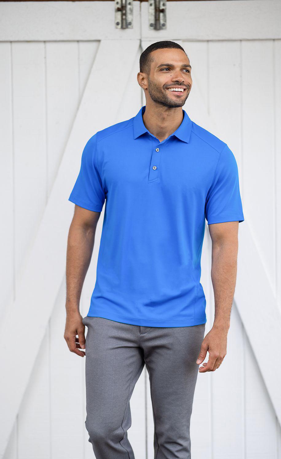 The iconic short sleeve Forge Eco Recycled Polo is engineered with 4-way stretch for exceptional versatility, designed to be your favorite sustainable super soft men’s short sleeve polo shirt for golf, the clubhouse, the office, travel, work from home, or wherever adventure takes you. Supremely soft and stretchy with a modern clean look, the moisture wicking, high quality Forge Eco polo is a perfect blend of UPF sun protection certified eco-friendly polyester and spandex, resulting in the most versatile, sustainable and comfortable polo for you and the planet.