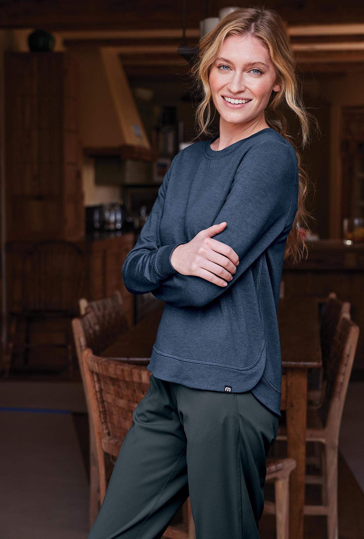 Remember that long weekend feeling any day of the week in this versatile, comfortable crew that can worn at work or while hanging out.