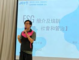 在青年商會中,我們透過工作計劃培養青年人自信、 開放和包容的態度,這是新一代青年發展的重要元 素。自信是青年人成長的關鍵要素,擁有自信可幫助 我們面對挑戰、克服困難,並追求自己的夢想。開放 的心態讓會員能夠接納新思想、新觀念和不同的文化 背景,從而拓闊視野,培養創新能力。而包容更是建 立和諧社會的基石,在合作當中,我們鼓勵青年人尊 重他人的差異,理解和關心他人的需求,建立同理心 並與他人和睦相處。