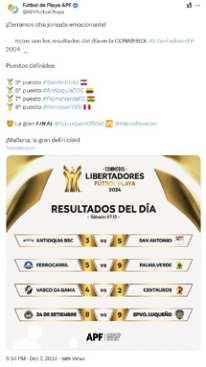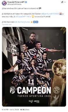 Los ganadores de las semi昀椀nales de昀椀nieron al campeón del Apertura 2024 que en esa oportunidad fue el Club Libertad.