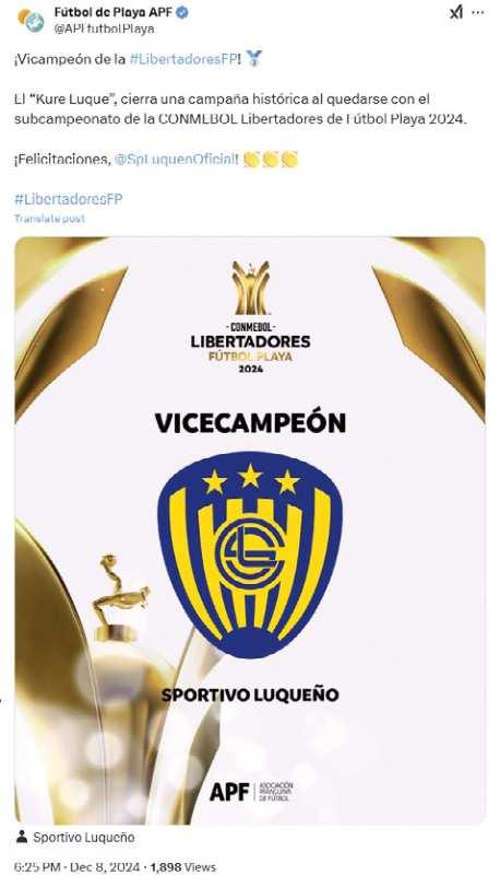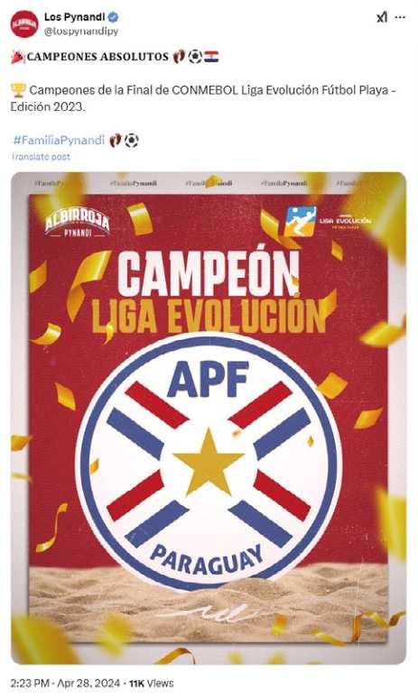 En el año 2024, el Fútbol Playa tuvo actividad con el desarrollo de la Superliga de Fútbol. La competición, que se dividió en Apertura y Clausura, fue clasi昀椀catoria para la CONMEBOL Libertadores Fútbol Playa que se disputó en el mes de diciembre en nuestro país. La competición se desarrolló íntegramente tanto en el Estadio Mundialista “Los Pynandi”, como en las canchas del Comité Olímpico Paraguayo.