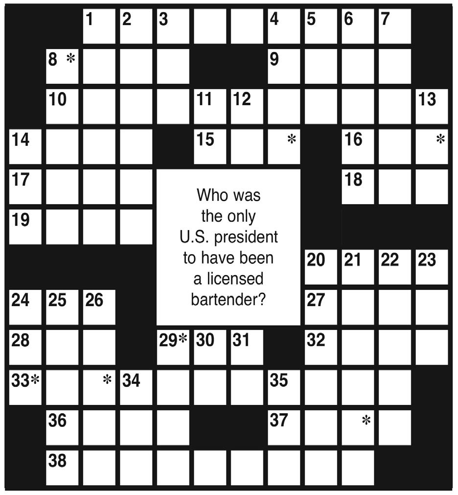 The identity of the featured celebrity is found within the answers in the puzzle. In order to take the TV Challenge, unscramble the letters noted with asterisks within the puzzle.