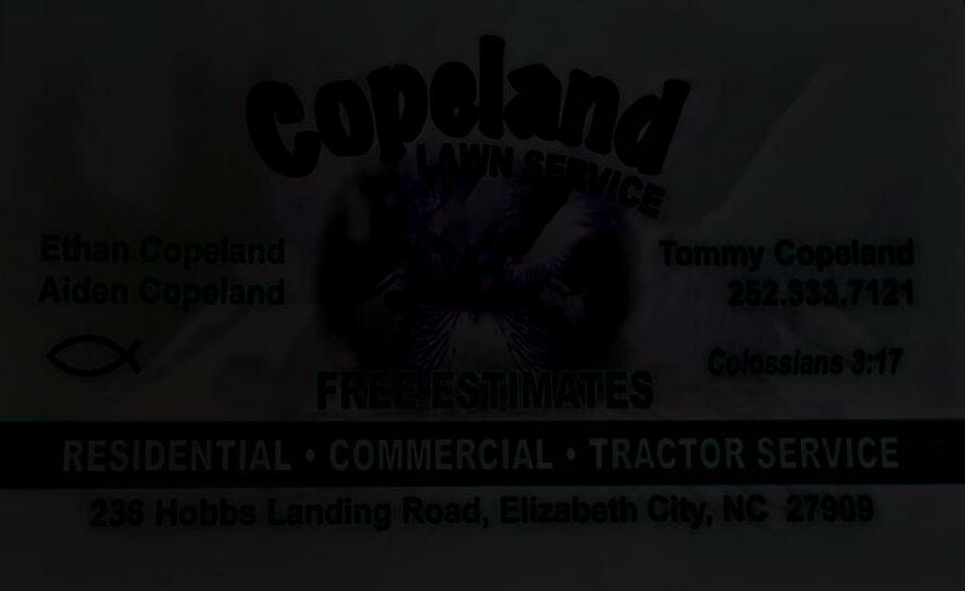 Sat 10/8: Sun 10/9: Mon 10/10: Tue 10/11: Wed 10/12: Fri 10/7: 4:45pm 7:30pm 4:45pm 7:30pm 9:00pm 4:00pm 4:45pm7:30pm 1:15pm US17 BY PASS, HERTFORD Restaurant &Catering Catering For AllOccasions Formal To Casual Please Call To Reserve Your Date 252-333-0553 252-426-1811 C A PTA I N BO CAB’S PTAIN BO B’S The only 2places to eat …home and Captain Bob’s INFORMATION POSTED on: www.auctionzip.com ID# 13303 or www.gotoauction.com |ID# 7784 |nashauctions.biz nash auctions@facebook Deceased-name withheld OCTOBER 15, 2022 AT 10:00 am Preview: Saturday,October 15, 2022, 9:00 am LOCATION: 509A FIRETOWER ROAD ELIZABETH CITY,NC27909 Nash Auctions Inc. NC Auction Firm 9615(Firm Licensee: Brenda Nash) 947 NNCHwy 343, South Mills, NC 27976 Auctioneer: TedNash (NCAL 7648) Licensed -Bonded phone: 252.771.5583 or 252.340.3313 10%buyer ’s premium w/cash or checks 13%w/credit cards—Visa or Mastercard Deceased name LIVE ONSITE ESTATEAUCTION SELLING THE CONTENTSOFTWO 40 FOOT CONEX BOXES, LARGE STORAGEBUILDING &CONTENTS OF THE HOUSE THE CONEX BOXES AND THE STORAGE BUILDING ARE STACKED FLOOR TO CEILING, MAKING IT IMPOSSIBLE TO TAKE PICTURES.338-1502 • www.buddygregorybodyshop.com 2Miles North of Belcross On Hwy 34, 8Miles Northof Elizabeth City •Paintless Dent Repairs •Insurance Claims •Glass Installation •CertifiedTechnicians •Body &Fender •Frame &Unibody ExpertPaint matching EARNING YOUR TRUST SINCE EARNIN1967 GYOUR TRUST SINCE 1967 ALL MAKES AND MODELS Car -O-LinerFrameSystem Spray Bake Paint Booth &Oven