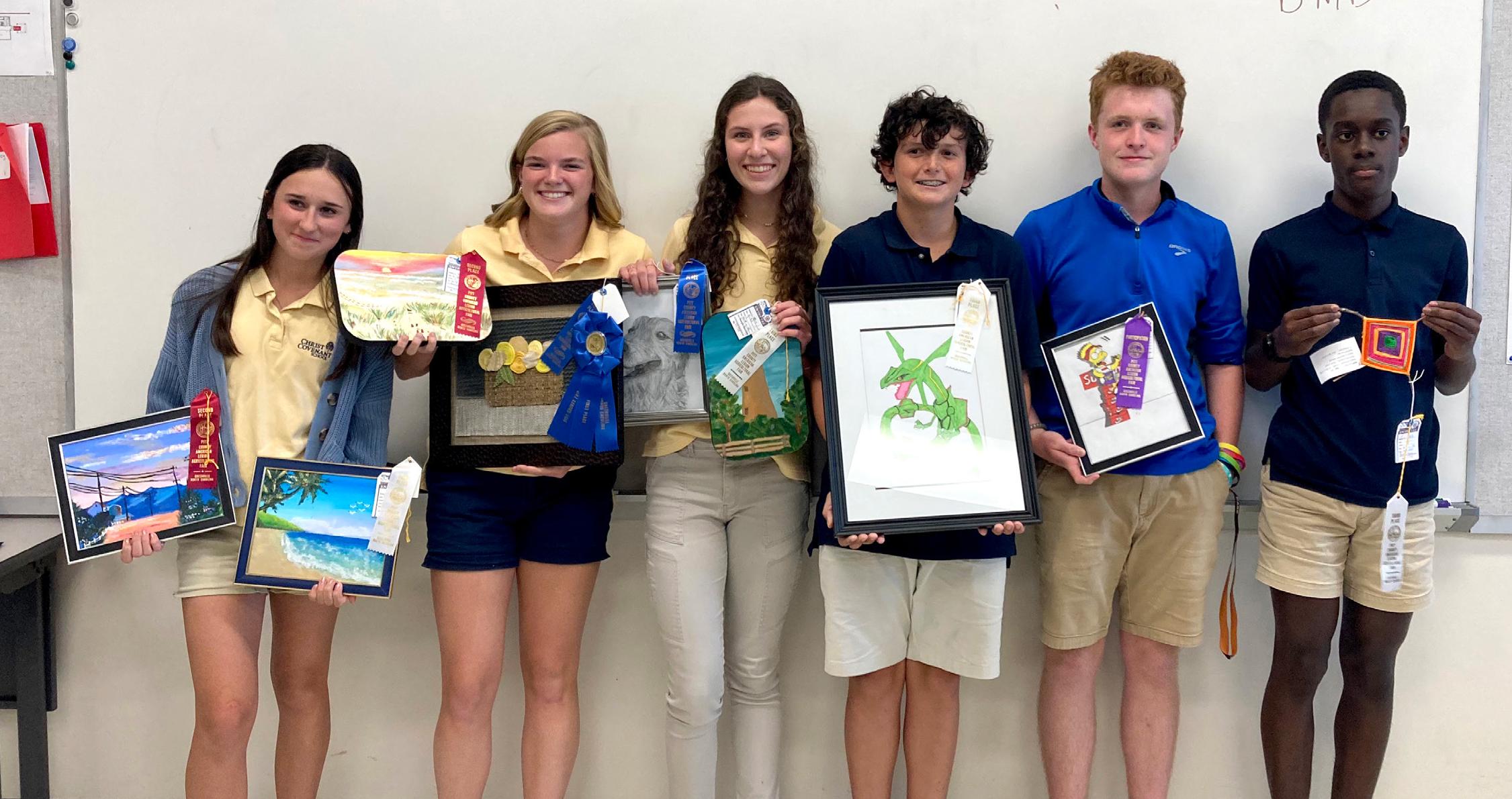 Winner Haylee Doughtie, center, with her art teacher Nancy Pantoja, left, and parent Erika Drake, right.