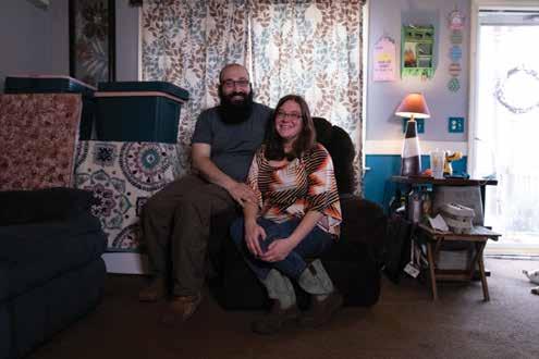 Kelsi Dew and her partner, James Goldberg, pose for a portrait in her late father’s home that they now live in together.