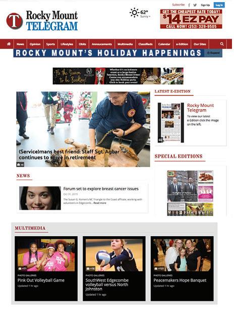 1530 & 1640 N. Wesleyan Blvd. Rocky Mount 252-677-5107 Shop Now! manessmotors.com www.KeyRealtySolutions.com www.Facebook.com/keyrealtysolutions Takyla Smith Hill Broker/REALTOR® Hel p in g Buyers &S ellers! 120 North Franklin St., SteG Rocky Mount, NC 27804 252.266.2369 Cell 252.886.RLTY (7589) Office Call Today 252.366.8144 ADVERTISE YOUR BUSINESS HERE! 163 SE Main St. Historical Downtown RockyMount 446-0163 Open Mon.- Fri. 9:00am-5:0 0pm Saturdays 9:0 0am-2:0 0pm Davis Fur niture Company www.facebook.com/DavisFurnitureCompany www.davisfurniturecompany.com ARE YOUREADYFOR WINTER? ALL CHRISTMAS MERCHANDISE NOW 30% OFF While supplies last!