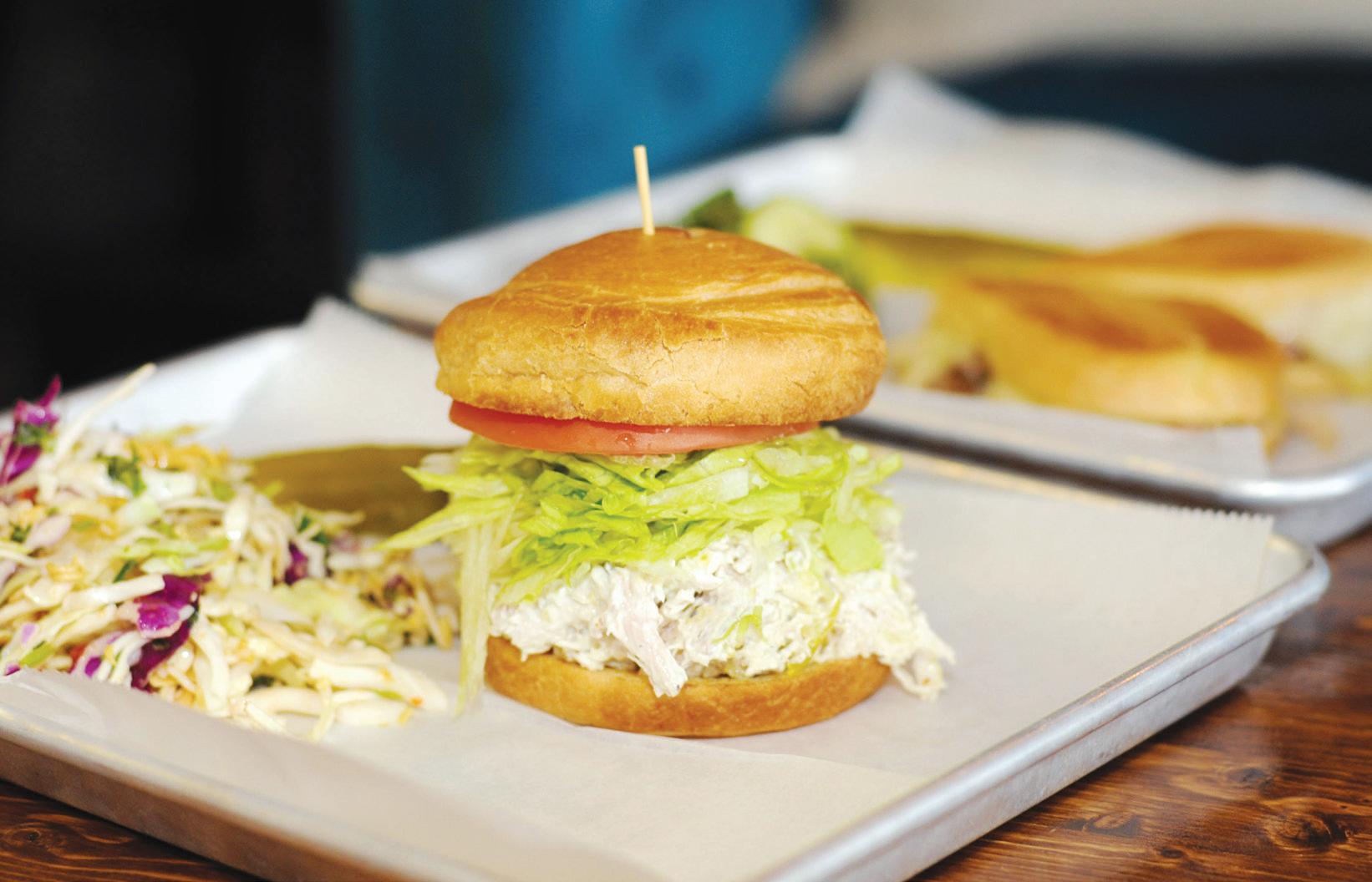 roads in the 1946 Chevy from which he slings Japanese fried chicken sandwiches and pork belly racos, Matt Cole found himself constantly coming to Winterville between catering gigs and stop ins at breweries. He noticed a pattern of growth and, with that, a perfect space for a restaurant in an aban doned Subway restaurant at the end of Winter Village shopping center on Old Tar Road.