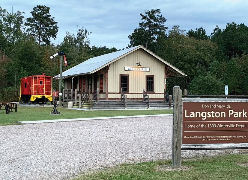 “It was really an identi able landmark of Winterville. It is one of the threads that tie to gether early Winterville with contemporary Winterville.” e depot has an outdoor platform that connects to the caboose parked next to it, a ticket booth, benches in the waiting area, a meeting room used for wedding receptions, birthday parties, family re